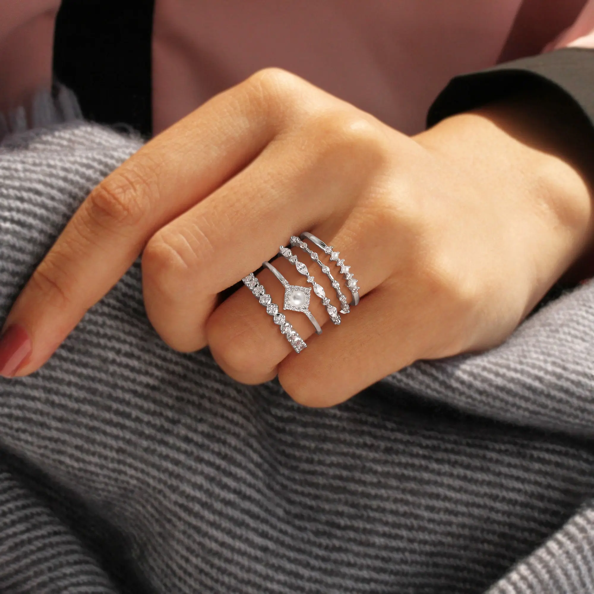 Discover the Tewiky Stackable Rings for Women, a dainty set of rings perfect for any occasion. These thin cubic zirconia rings offer a simple yet unique design. Choose from sizes 6/7/8/9/10 for a perfect fit. Ideal as a thumb fashion piece or a statement ring pack, these rings add sophistication to your jewelry collection.