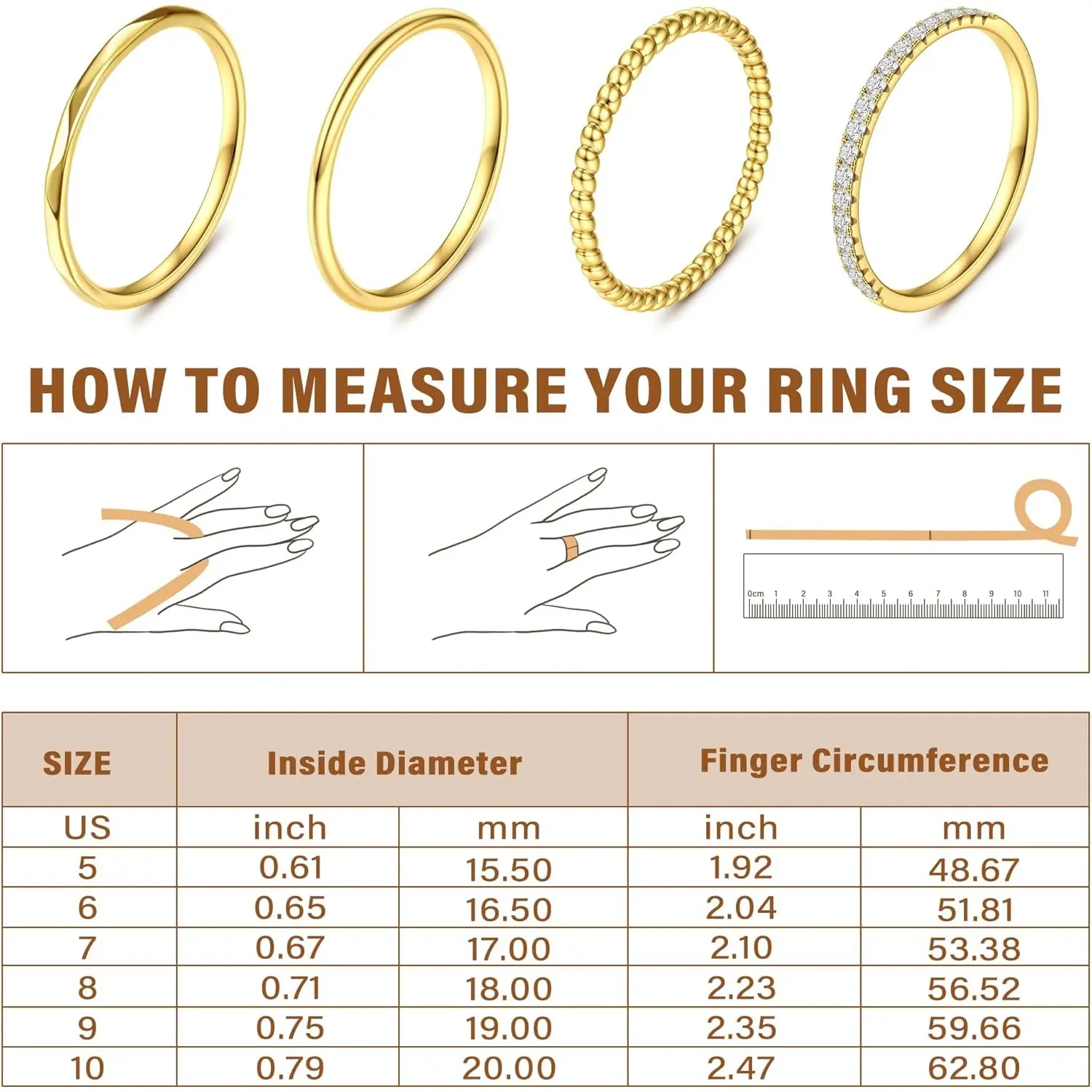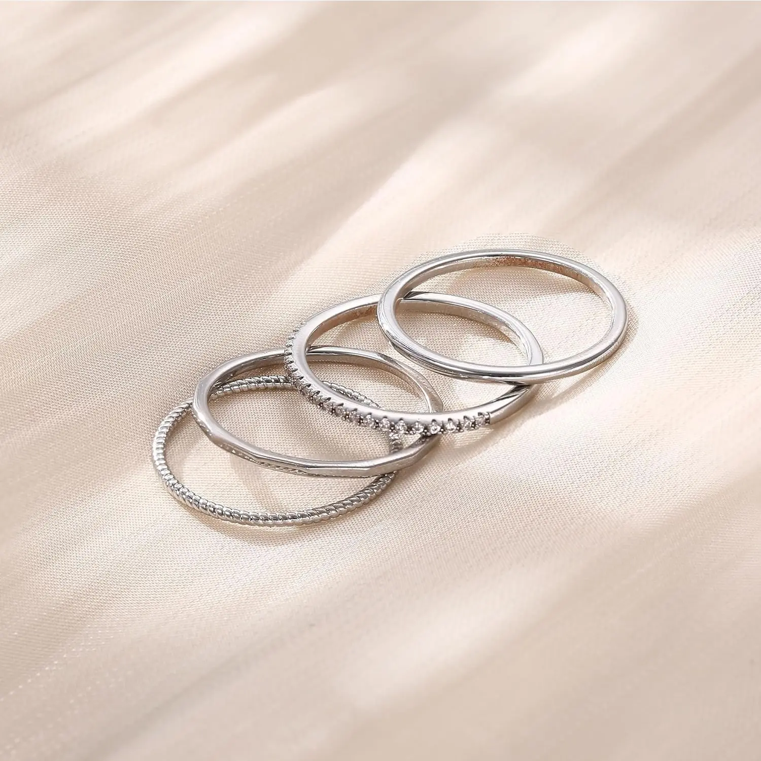 ⢠Stacking Set: Comes with 4 delicate, thin rings. Ideal for stacking or wearing alone. Available in gold and silver, these rings cater to all your fashion needs.