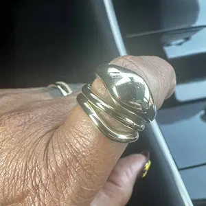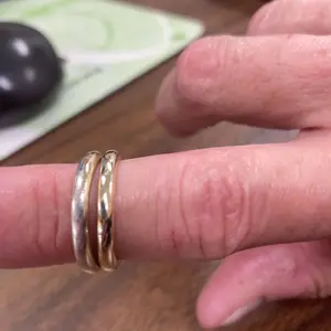 Other real gold ring , but now the gold is coming off showing silver underneath . This is a stack where I chose to wear the 2