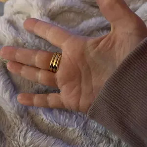 I love this ring stack! It looks so nice, my fingers are on the slightly slender side, I got a size 7 to wear on my left middle finger and the fit is perfect. You can wear them separately, I love the way it looks stacked or wearing the two slimmer ones together. Perfect gold finish as well, get it!