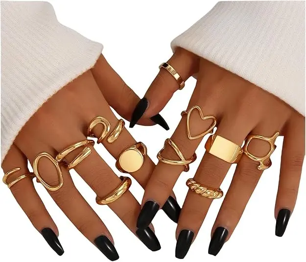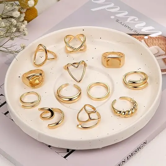 This set includes 12 unique styles: twisted, dome, croissant, and band rings. Perfect for everyday wear or special occasions, these chunky gold rings add elegance. Wear them alone or stack them for a bold look. Ideal for gifting to friends, mom, or grandma on birthdays, anniversaries, or Christmas.