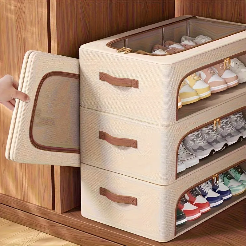 New Stackable Shoe Box with High Lid, Easy Access, Multi-Functional Bed Storage, Perfect for Home Dorm School Use, Organizer Box