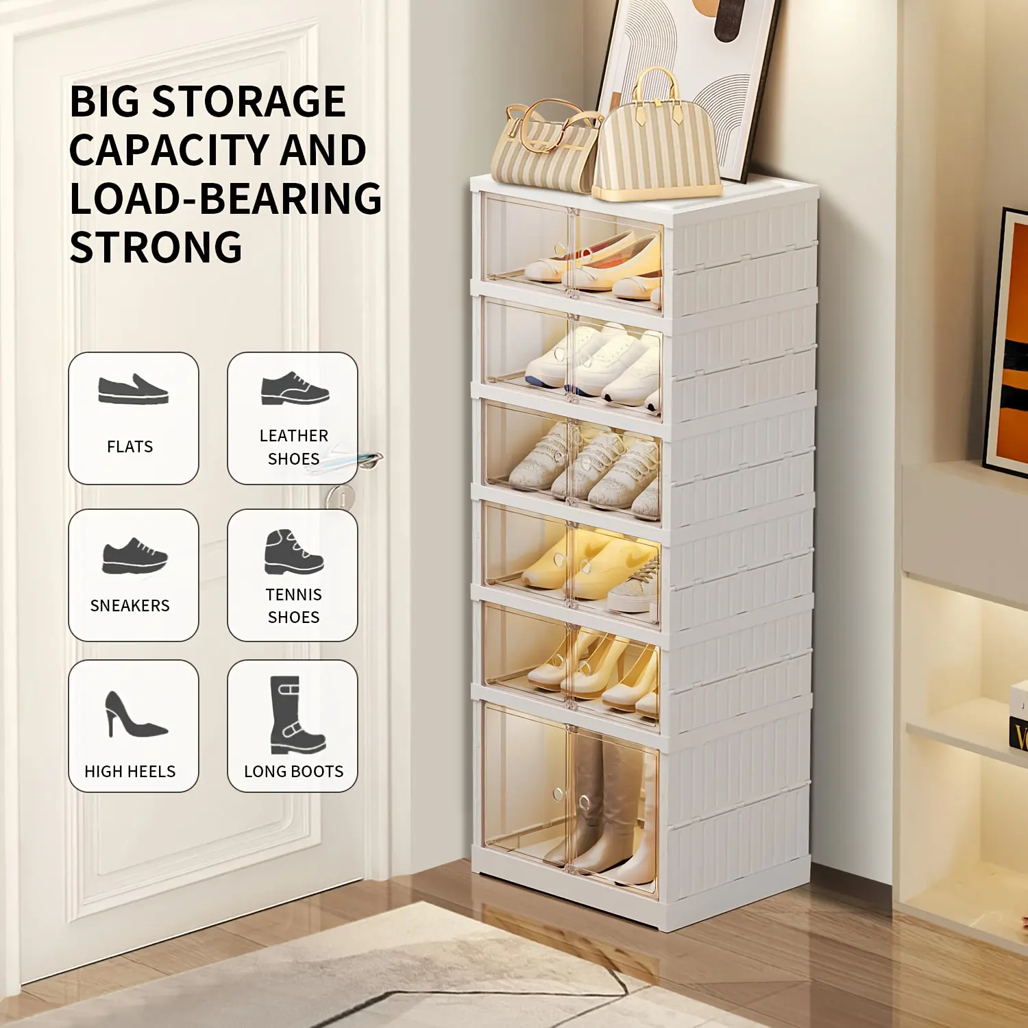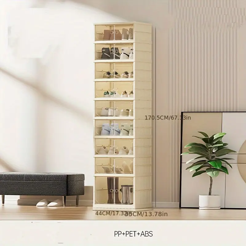 ·Foldable Design: These clear plastic organizer boxes are foldable, saving space when not in use. Perfect for storing sneakers and boots. 📦