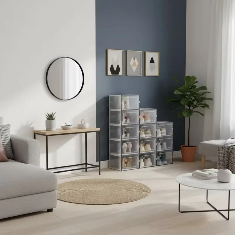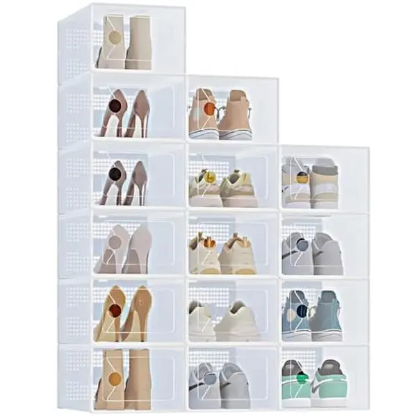 Stackable Shoe Storage Boxes with Lids, Modular Large Shoe Rack & Organizer Shelf, Transparent Front Panel for Easy Display & Identification, Breathable Hole Design to Keep Shoes Fresh, Sturdy Interlocking Structure for Customizable Storage