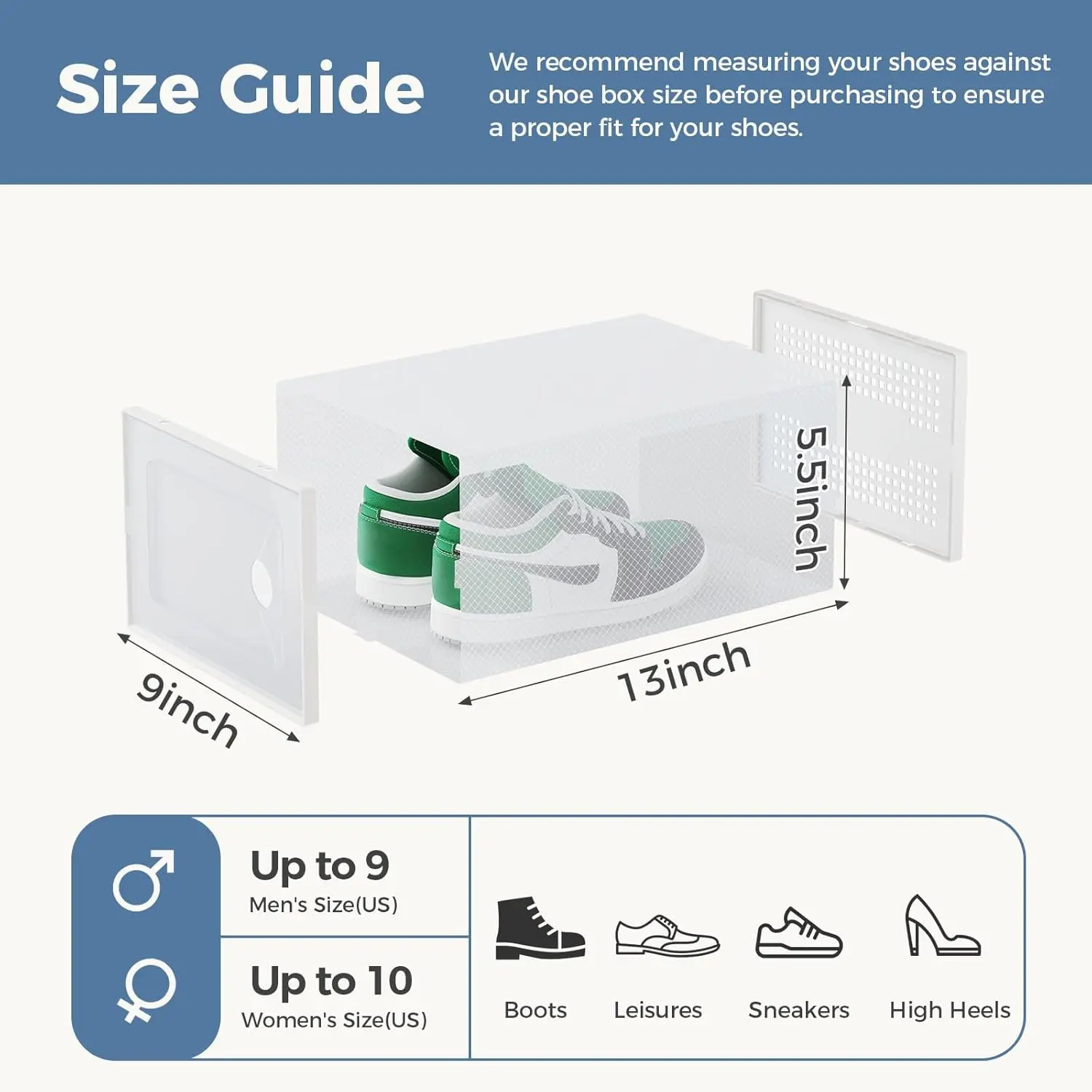 SONGMICS HOME Collapsible Shoe Boxes - Foldable Stackable Portable Organizer for US Size 13 Transparent PP Plastic Racks