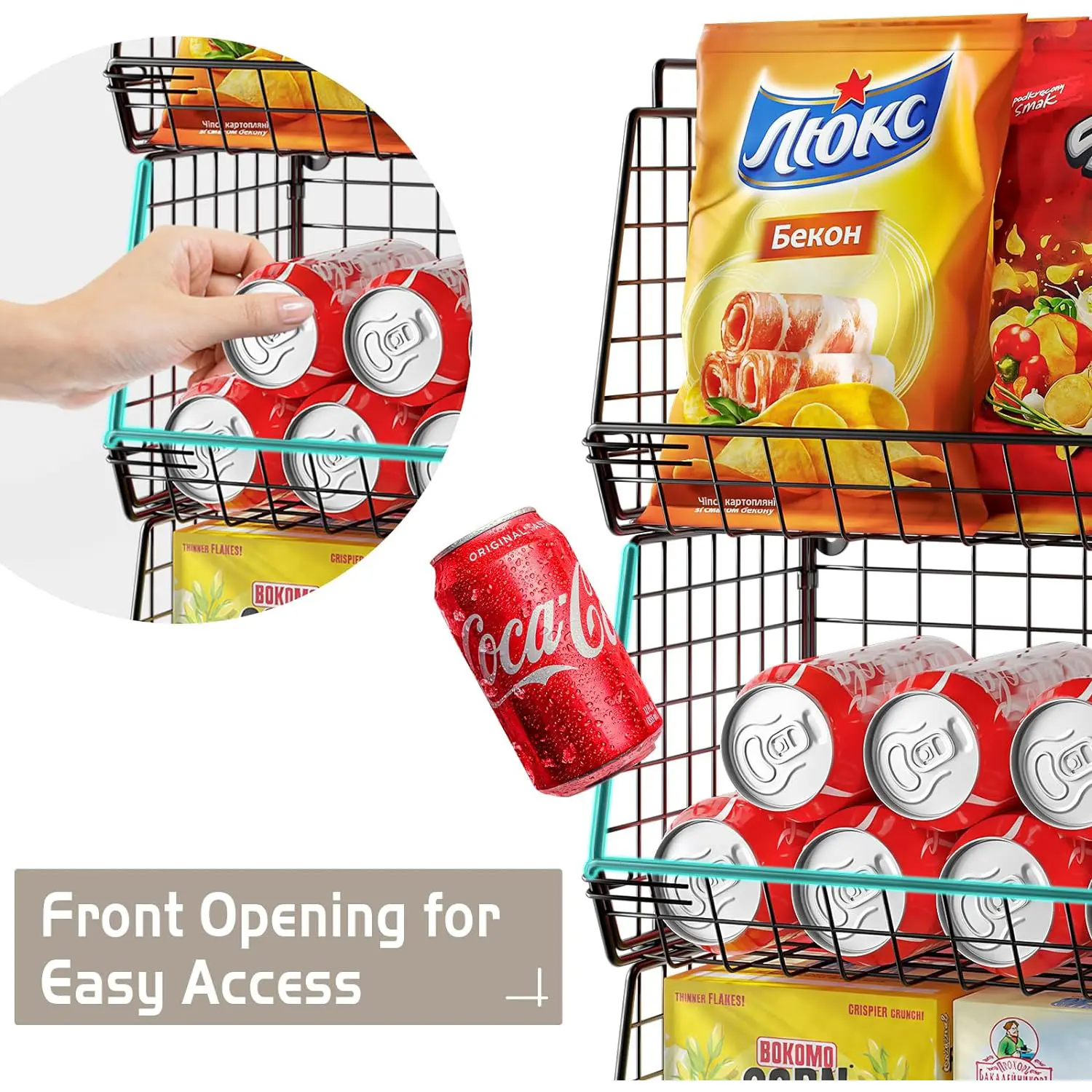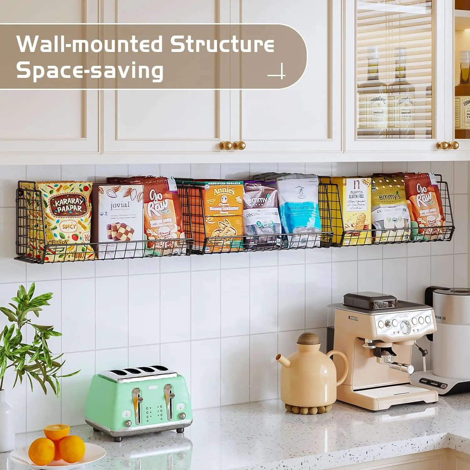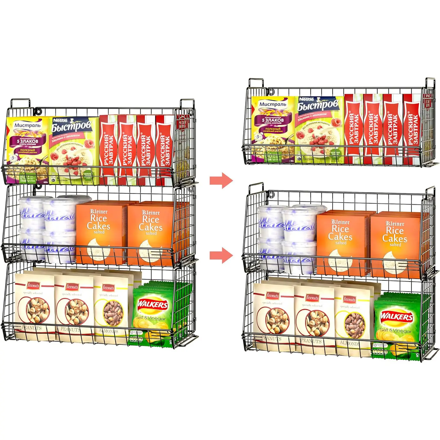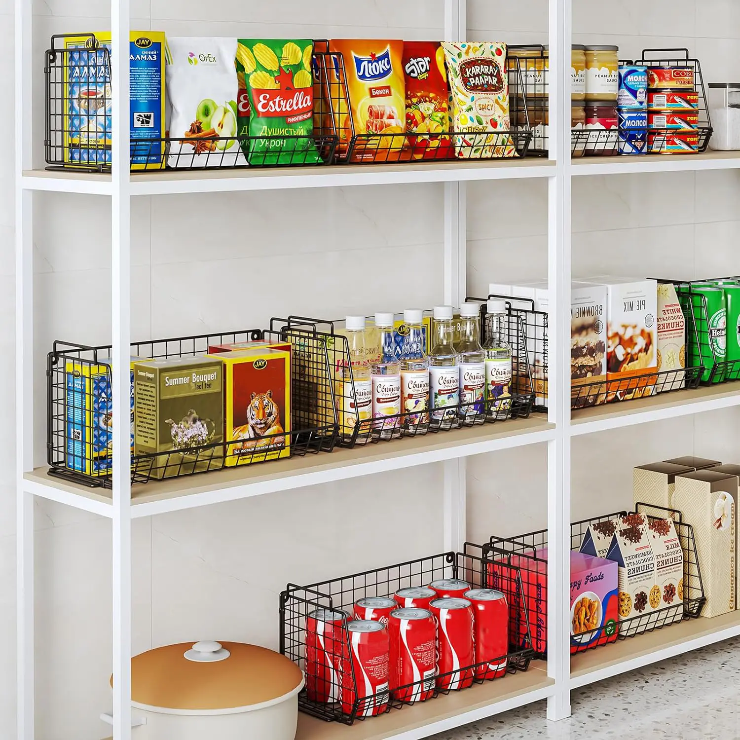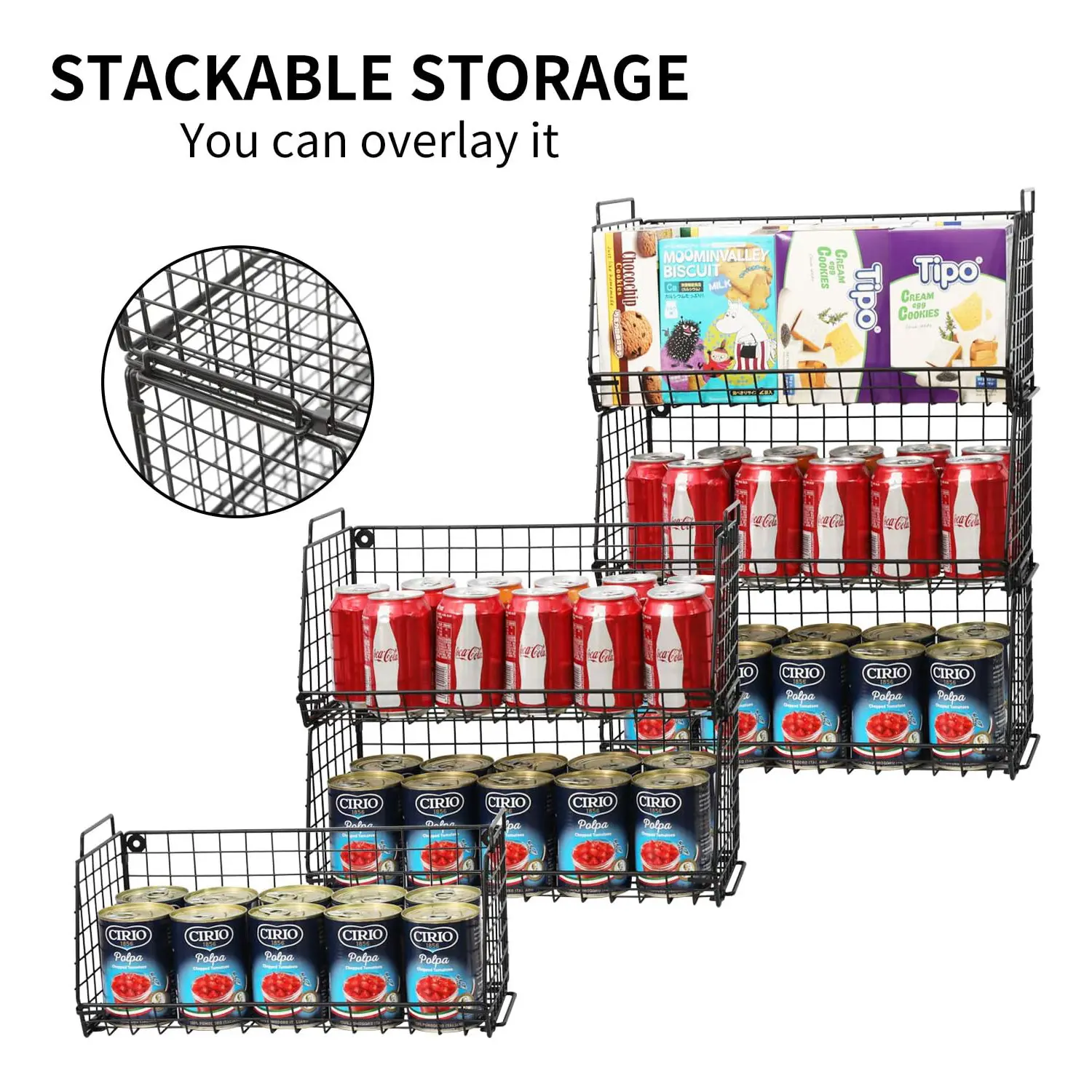 ·Wide Open Design&Inbuilt Handles: Made with a sturdy wire metal frame, this wall-mounted basket features a rectangular shape with a low front and high back to keep your items neatly tucked away and easily accessible. Inbuilt handles make basket easy to carry, and very convenient to stack and lift the basket down the shelf and cabinet.