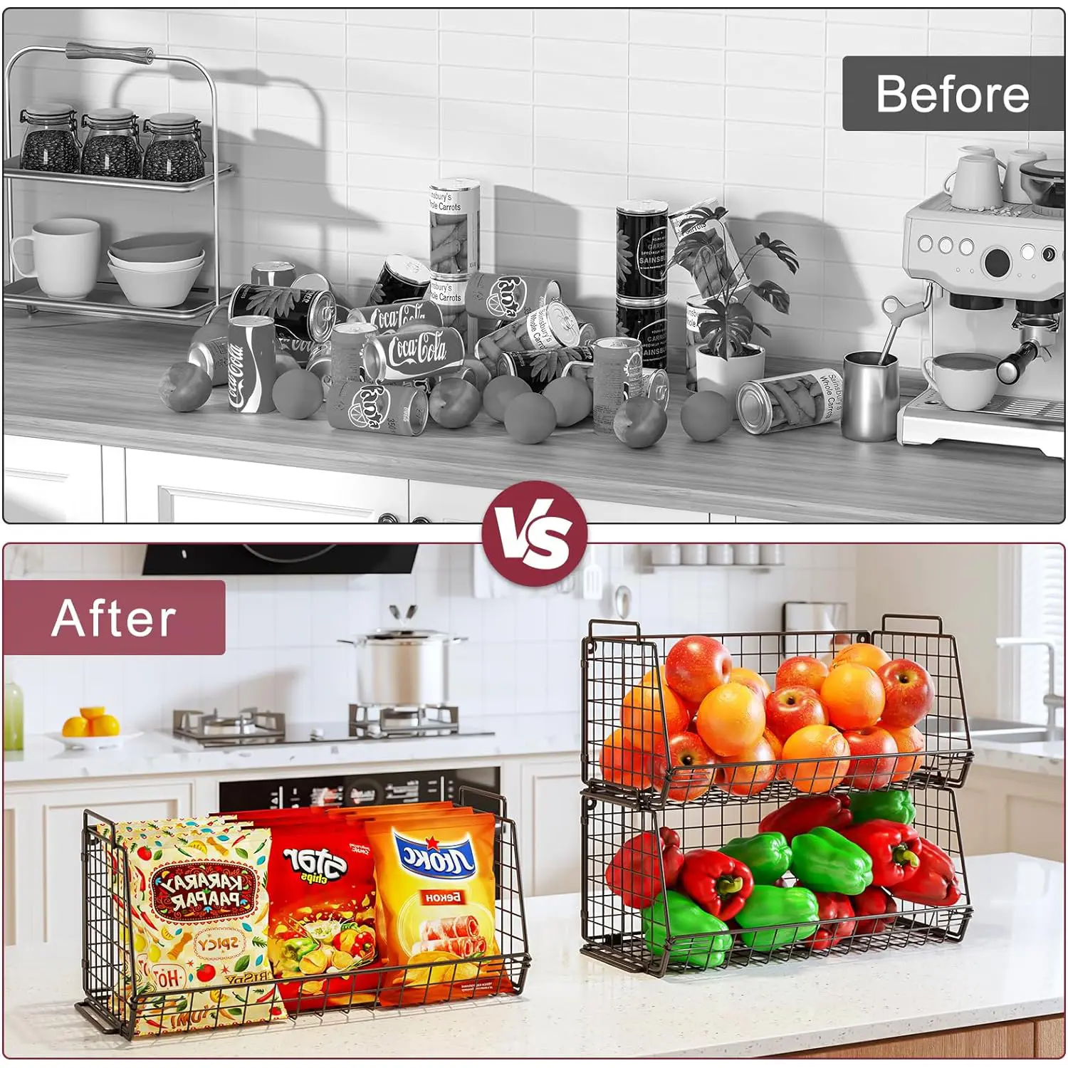 ·3 in 1 or Use Alone: The stackable wire basket is the layered design, used alone or stacked according to your own need and idea. And you can put it in the cabinet or tabletop, maximize your storage space. Also, you can hang 2 baskets on the wall, and place 1 on the shelf. You can DIY the using methods.