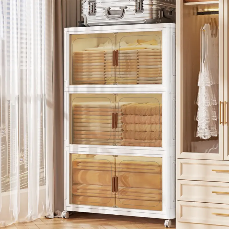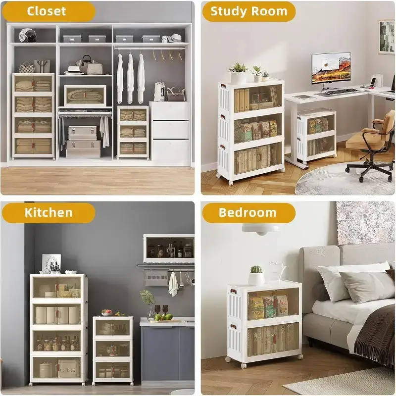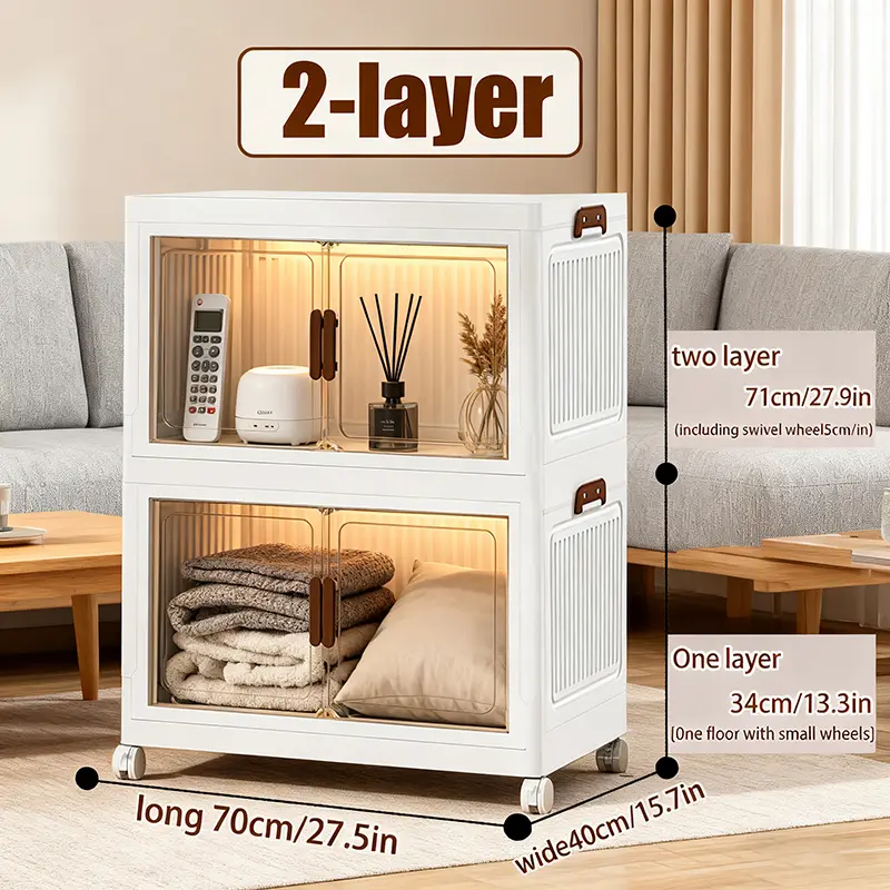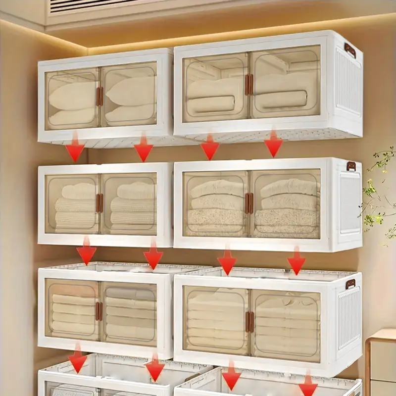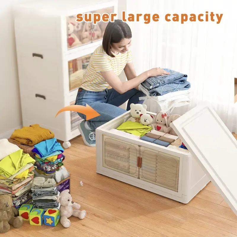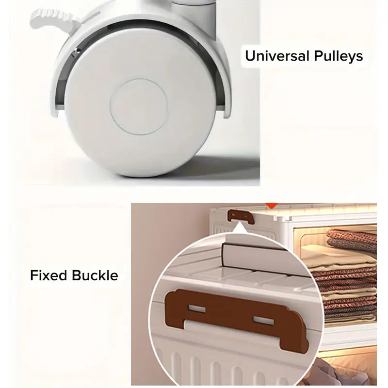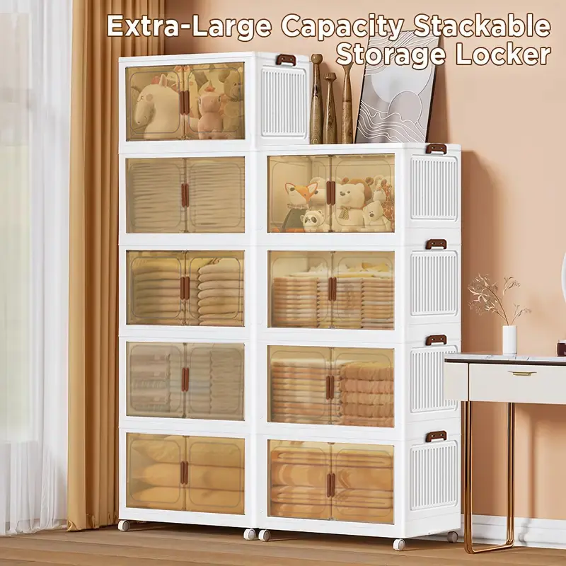 [Space-saving Storage Box]stackable storage box-Space-saving, storage cabinet, folding cabinet with covered wheels, can store clothes, snacks, toys, closet and book storage, open front door