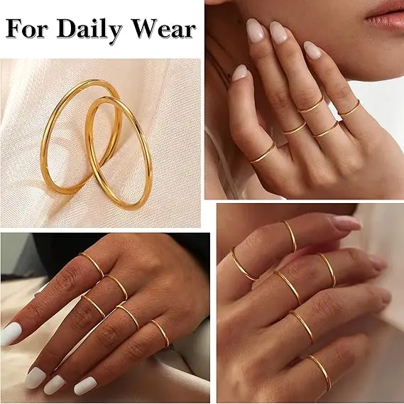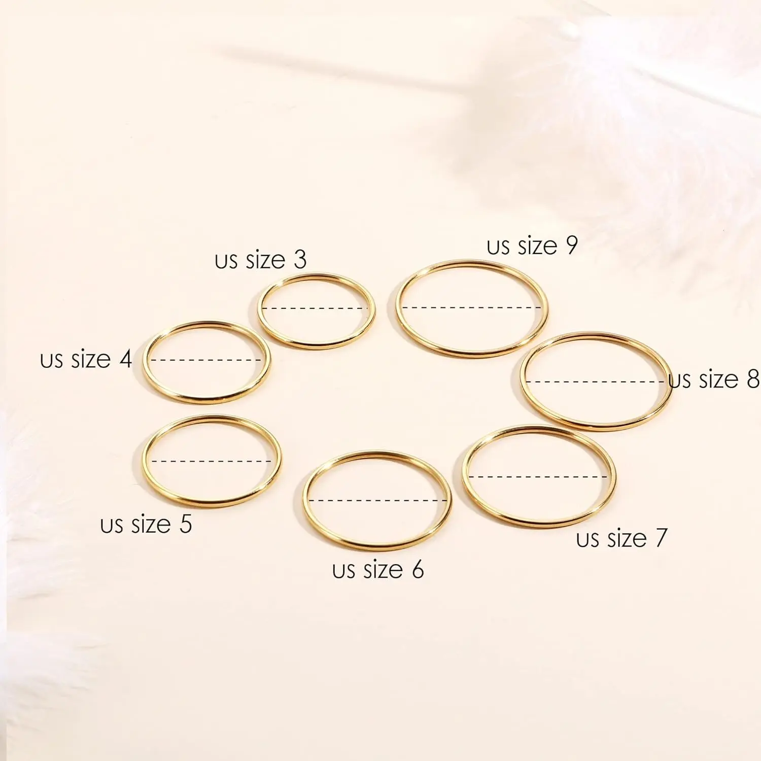 ·Timeless Simple Band Rings: Sold by 7pcs gold rings a set. Available in us size 3/4/5/6/7/8/9. 1mm thin rings is ieal for stacking or wearing alone for a simple yet chic look.