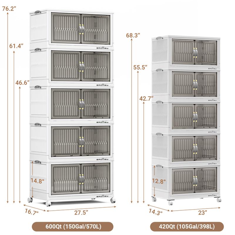 【Magnetic Front Open Doors & Wheeled】The large storage bins with doors provide two options: front doors opening or top lid opening. The brown door can be easily seen through and with a magnetic device. The 4x 360-degree rotating wheels all have fixed functions and can be easily moved by releasing the valve, making them friendly to the elderly.