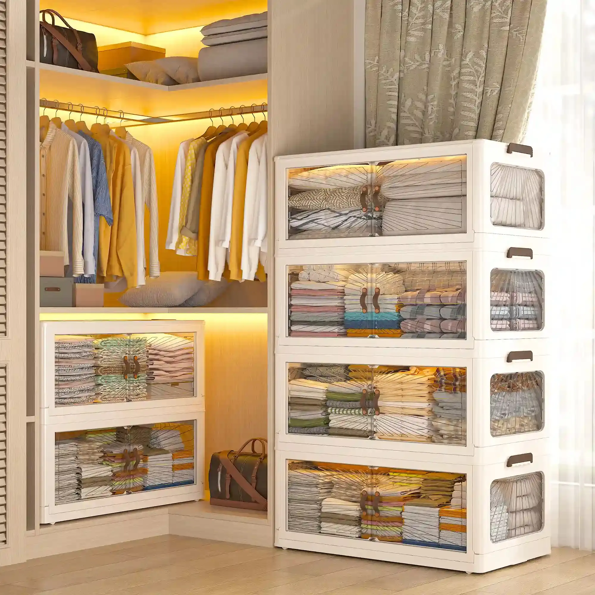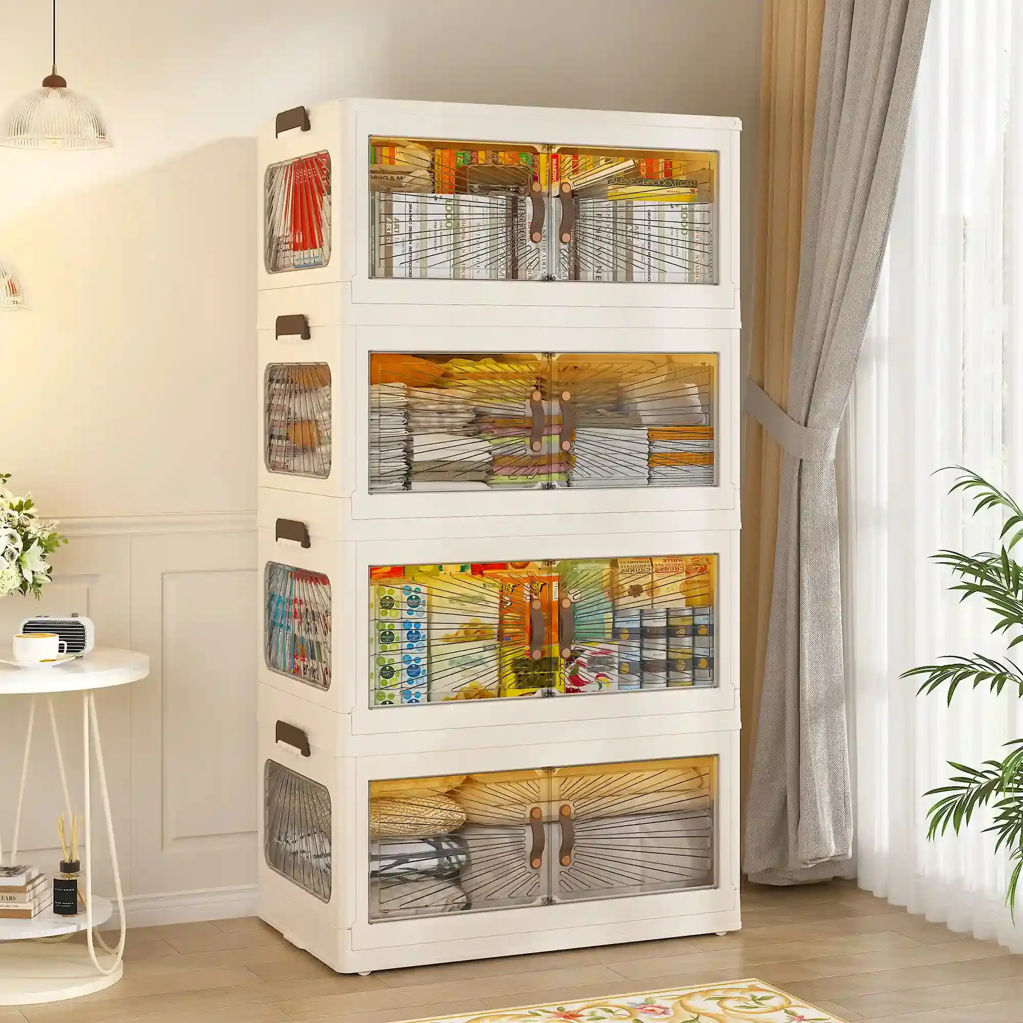 ·Endless Possibilities:Ideal for various uses, including a bedside cabinet in the bedroom, a storage unit in the kitchen, or a camping storage bin.Use them as stackable storage bins for clothes, tools, bathroom essentials, or even as a shoe rack or camping organizer.