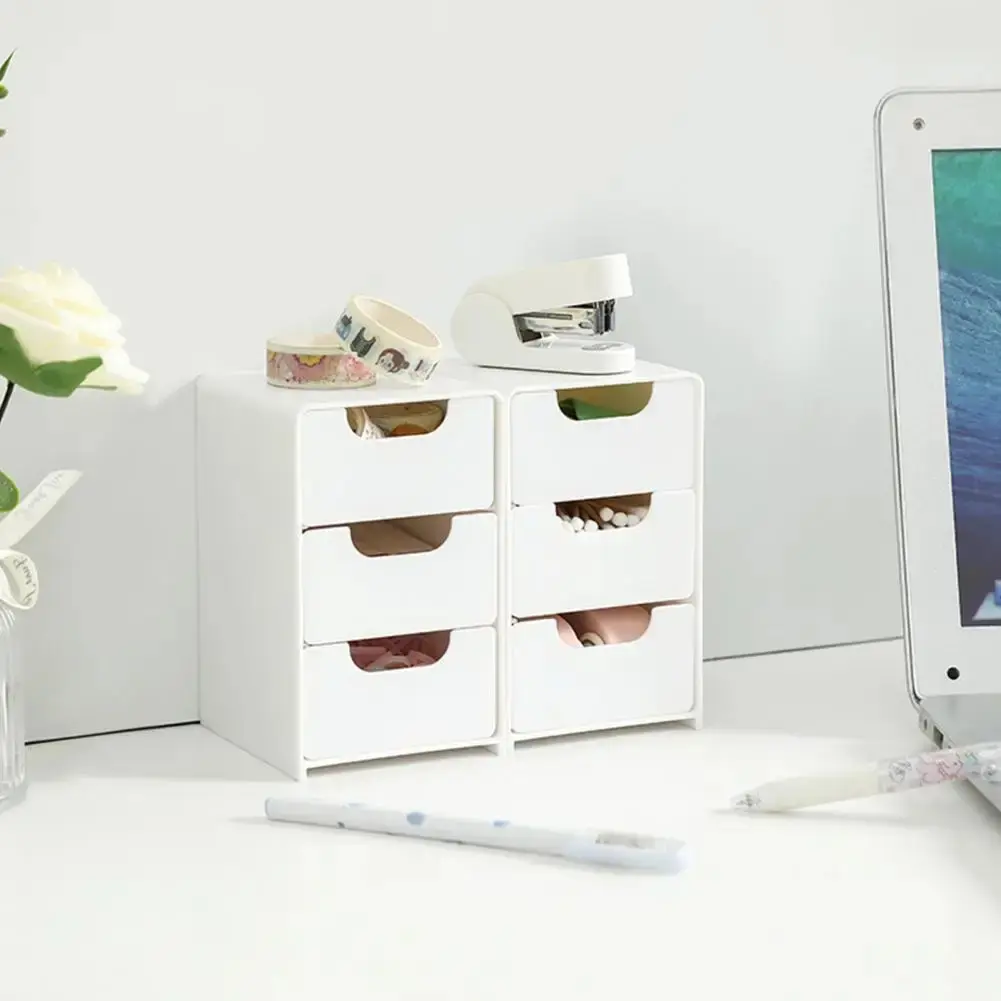 Stackable Storage Box Organizer, Dustproof Cosmetic Drawer Unit, Makeup Organizer Box, Ideal for Desktop Organization, 6 Compartment Design, Multilayer Storage
