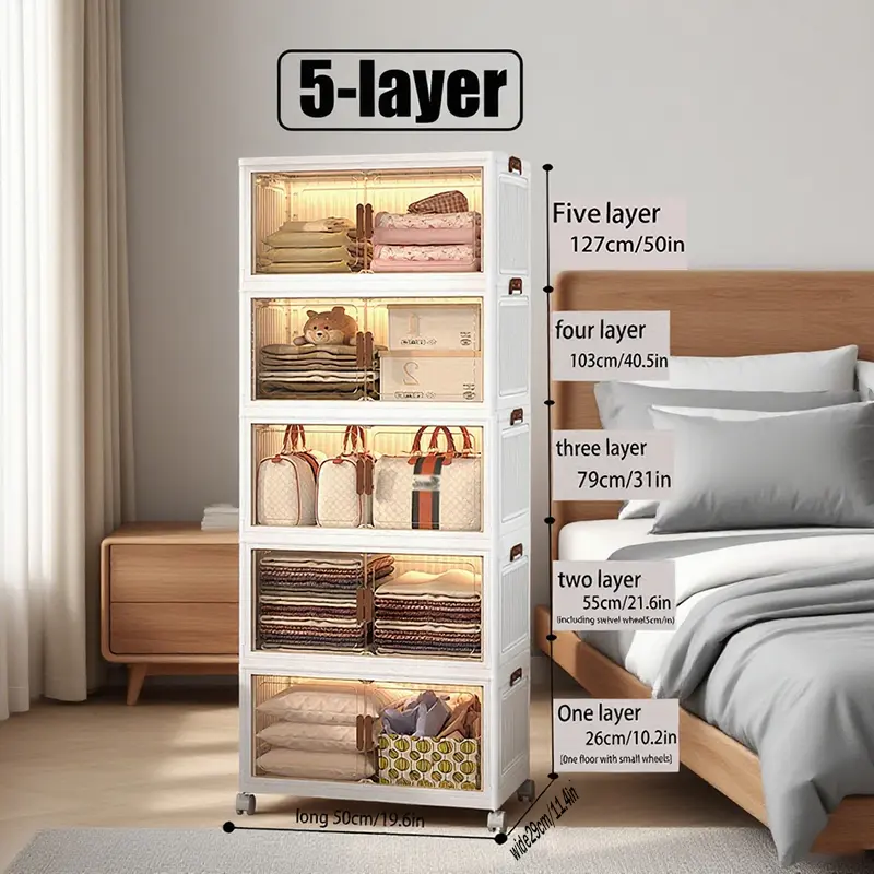 Stackable storage boxes with LIDS and wheels - plastic storage boxes, foldable storage boxes with doors, wardrobe organizers and home, office, kitchen, clothes storage cabinets, shoe box storage cabinets.
