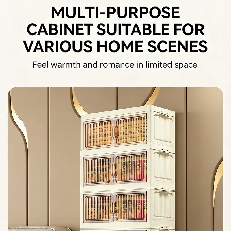 Combine Stackable Storage Cabinet No Assembly Transparent Visible Door Pulley Movable Living Room Bedroom Study Toy Snack Multiuse Organizer