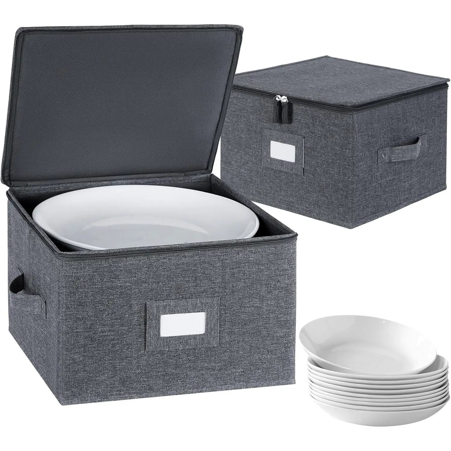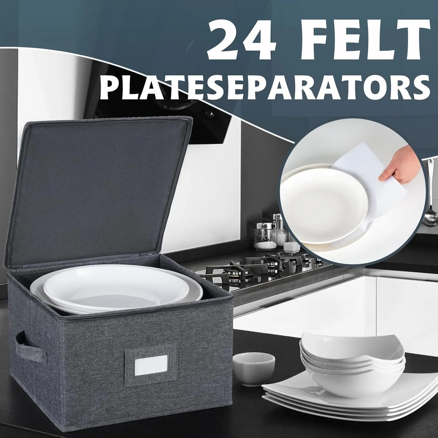 DURABLE MATERIAL - The platter storage containers is made of 300D oxford fabric and thick cardboard, each dish storage containers holds 12 plates, each includes 12 felt plate separators for protection against chipping and