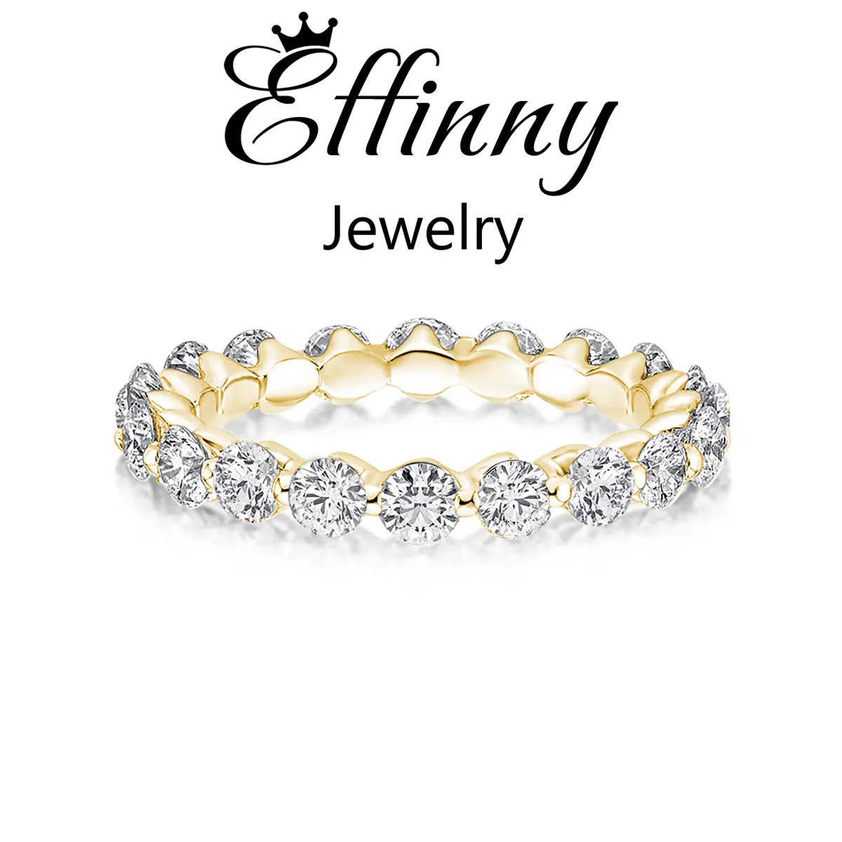 5. Effinny 1.5ct Classic Round Cut Golden Women's Wedding Ring,5A Cubic Zirconia Stackable Ring for Women In Sterling Silver Outdoorfun