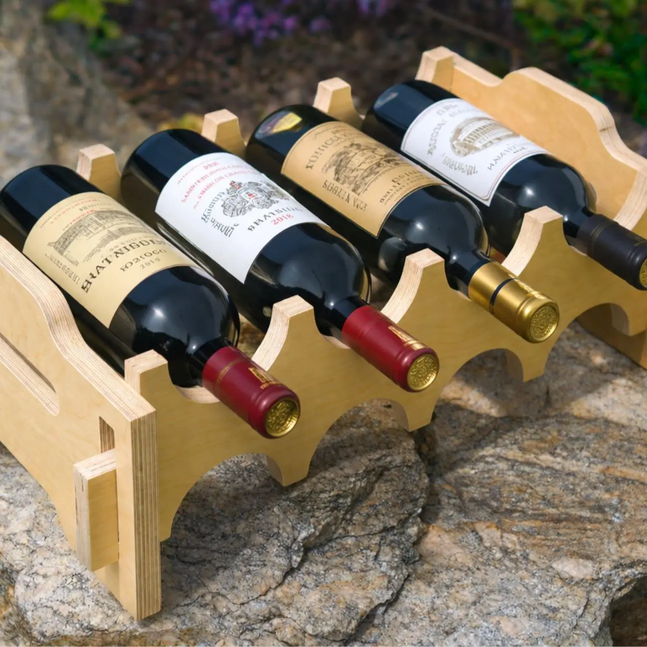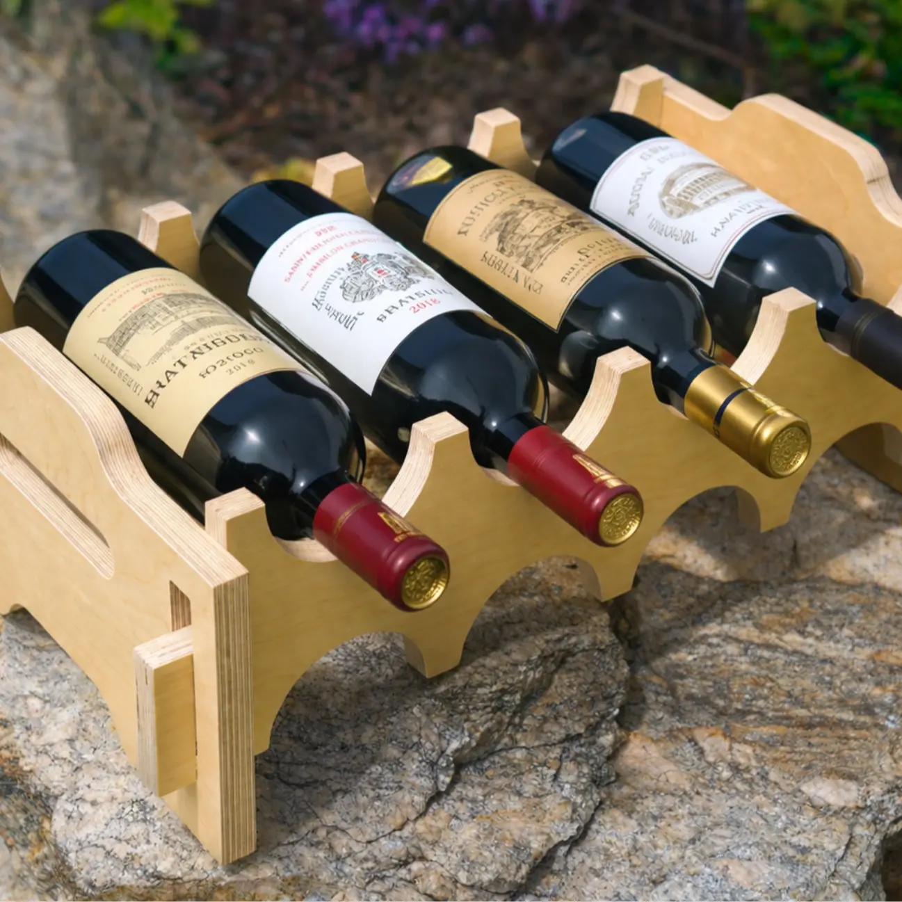 Each rack holds 4 bottles, and the modular design allows you to stack multiple units to store 8, 12, 16+ bottles as your collection grows.
