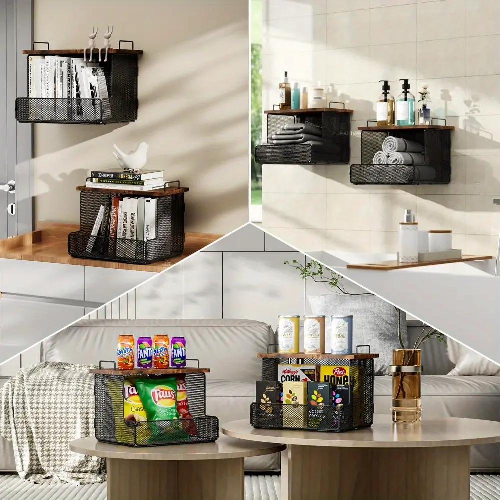 Explore Our Exquisite 2 One Kitchen Vegetable Basket with a Harmonious Combination of Wooden Lid. Practical and Elegant, Suitable for Your Modern Family.