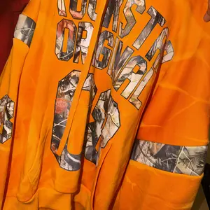 It has a Bleach Stain design that you really don’t recognize in the photos before you buy it. Also the Hoodie Pocket was ripped. But the Bleach stain look appears to be very “cheap” looking almost as if someone spilled chemicals on the Hoodie by mistake. It’s very faded, but noticeable up close.