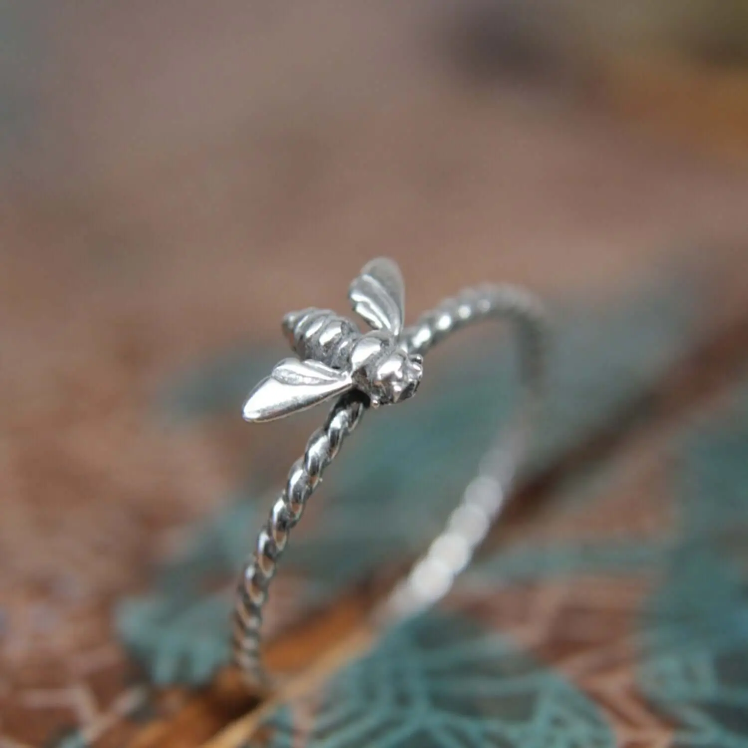This listing is for a dainty little sterling silver honey bee stacking ring.