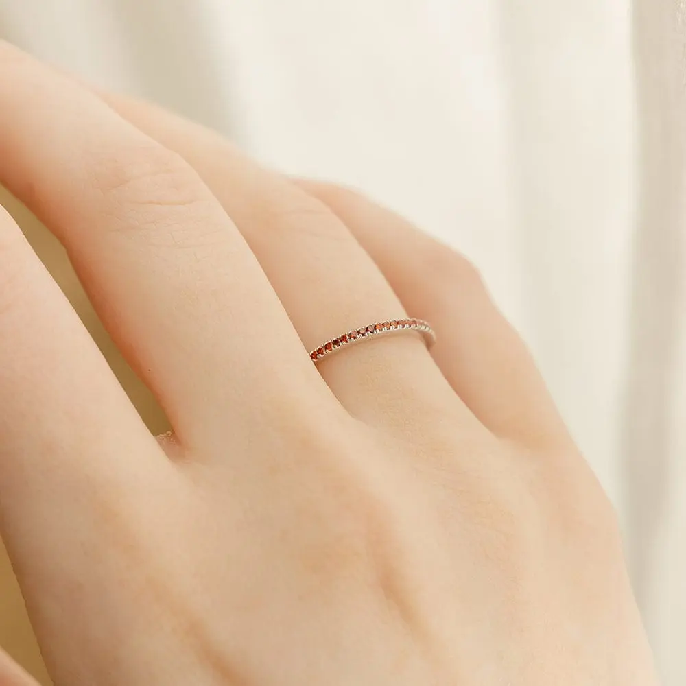 I bought this ring to wear with my other stack rings. I needed one to represent my son in my stacked story. His birth month is January -in this picture it looks a little orange. So the color is a little off but I love it! Very dainty- which I love- my next purchase will be my husband’s birthstone.