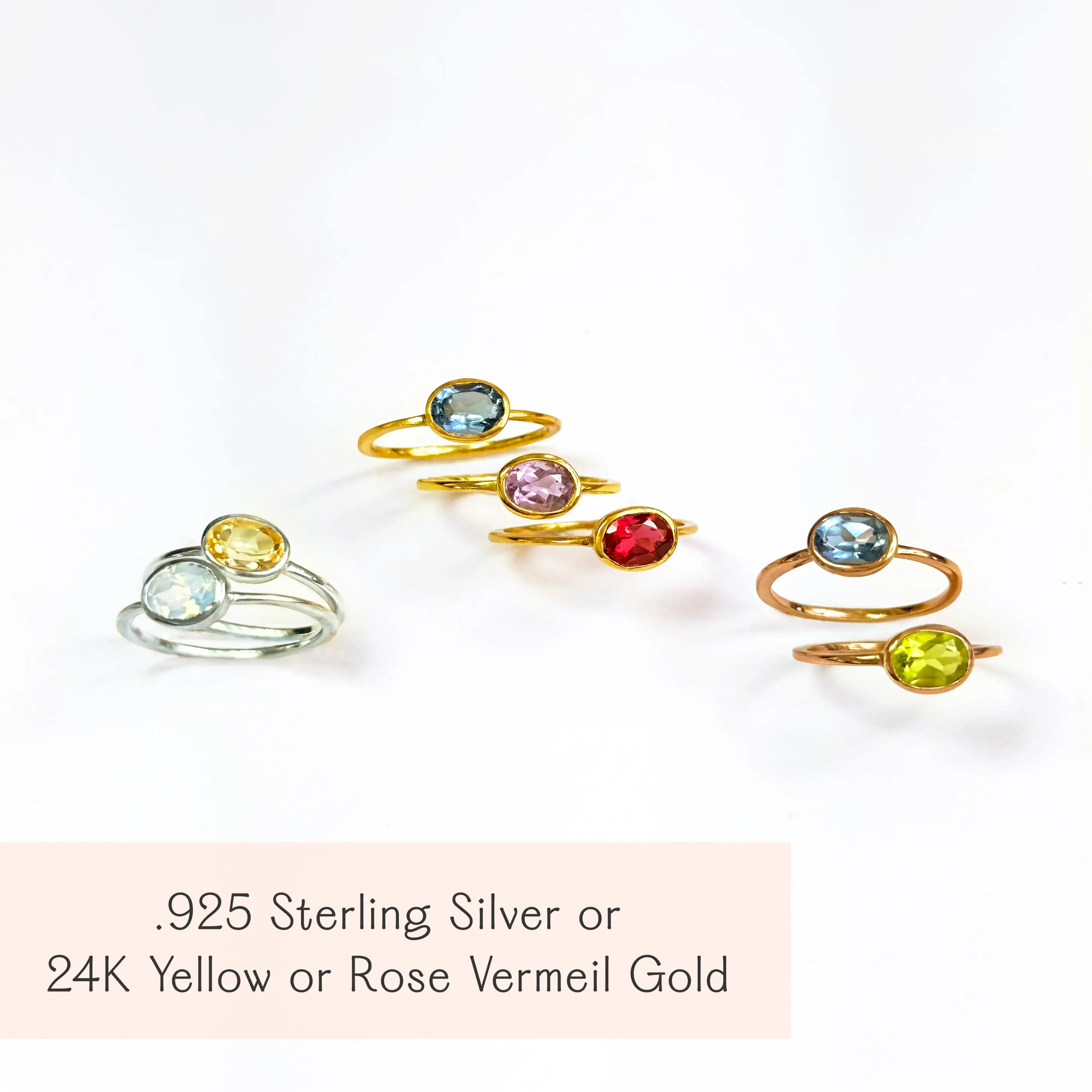 ;You'll love the elegant simplicity of our tiny oval gemstone ring set. Each ring is crafted with a delicate band and a slender oval-cut birthstone, making it the perfect size for stacking without feeling bulky. Choose from a wide range of stones to reflect each child, family member, or personal milestone.