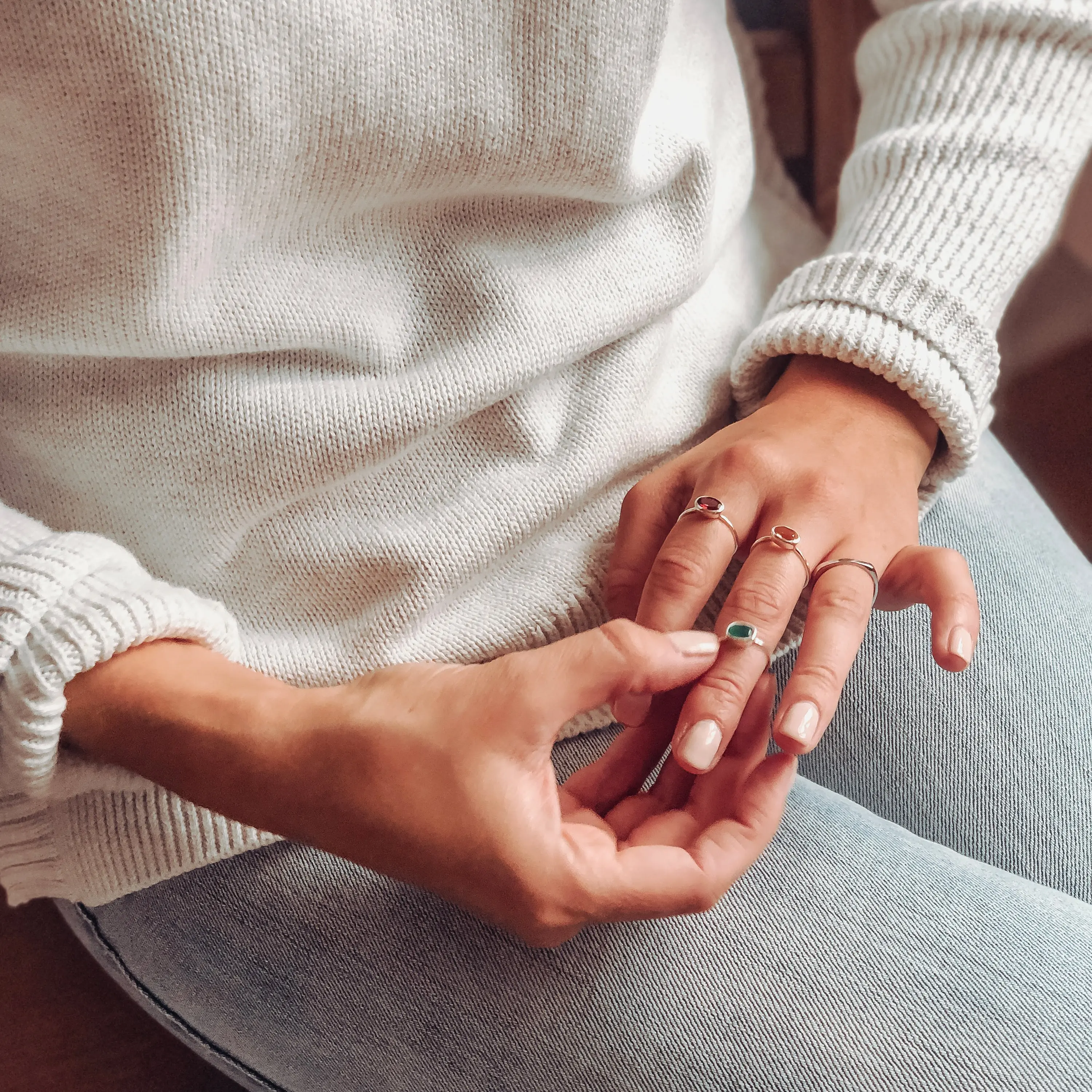These dainty rings are ideal for building a personalized jewelry stack. Whether you're creating a thoughtful Mother's Ring set or curating your own combination of favorite colors, this design adds both meaning and style. The slim profile means they can be worn daily—alone for a minimalist look or stacked for extra shine.