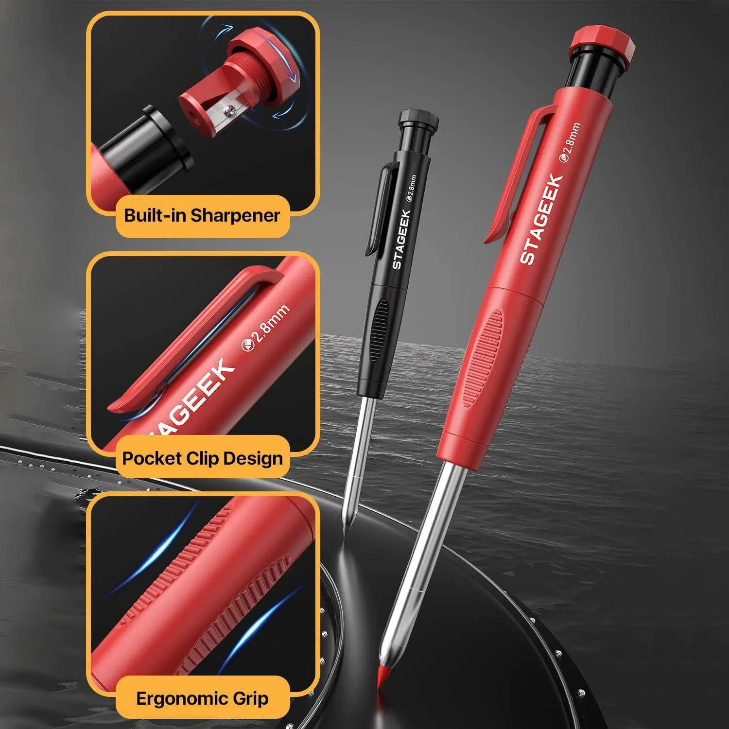 ·45mm Tip Design: STAGEEK construction pencil woodworking tools features a unique 45mm elongated tip that enables precise marking in tight spaces and deep holes. Reduces the need for adjustments in hard-to-reach areas, improving woodworking efficiency and ensuring accuracy and convenience.
