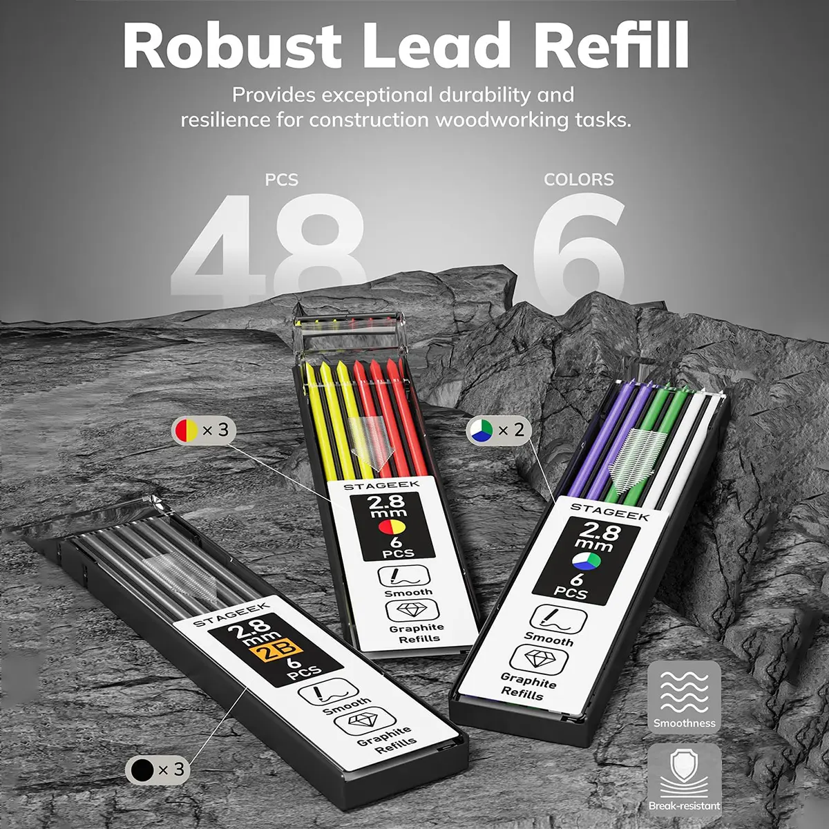 ·Abundant & Robust Lead Refills: With a 2.8 mm thick lead in black, red, yellow, green, white and blue, our carpenter pencil delivers superior strength and resilience for construction woodworking tasks, reducing breakage and damage. Designed for extended use.