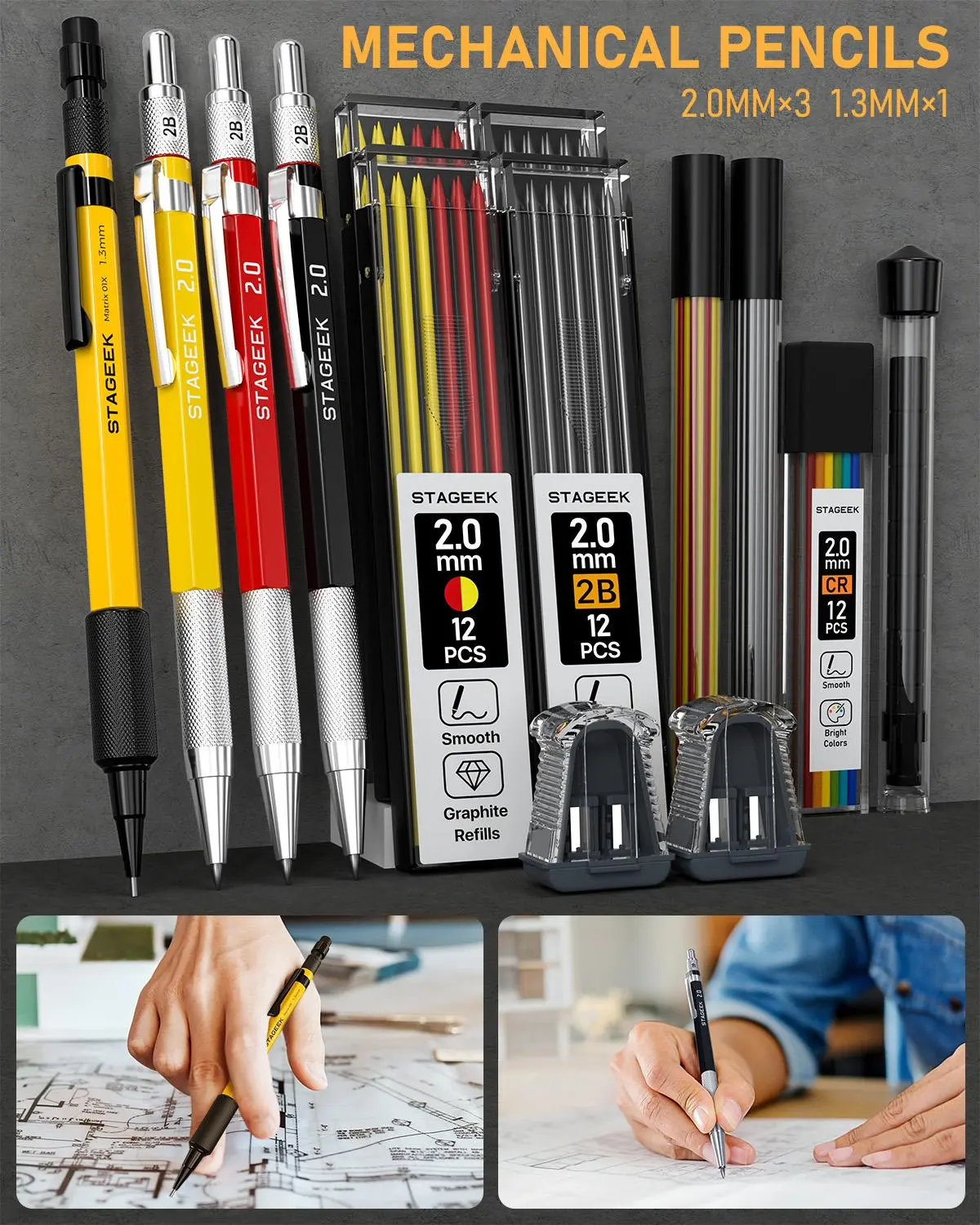 ·Durable: 1.3mm and 2.0mm mechanical pencils