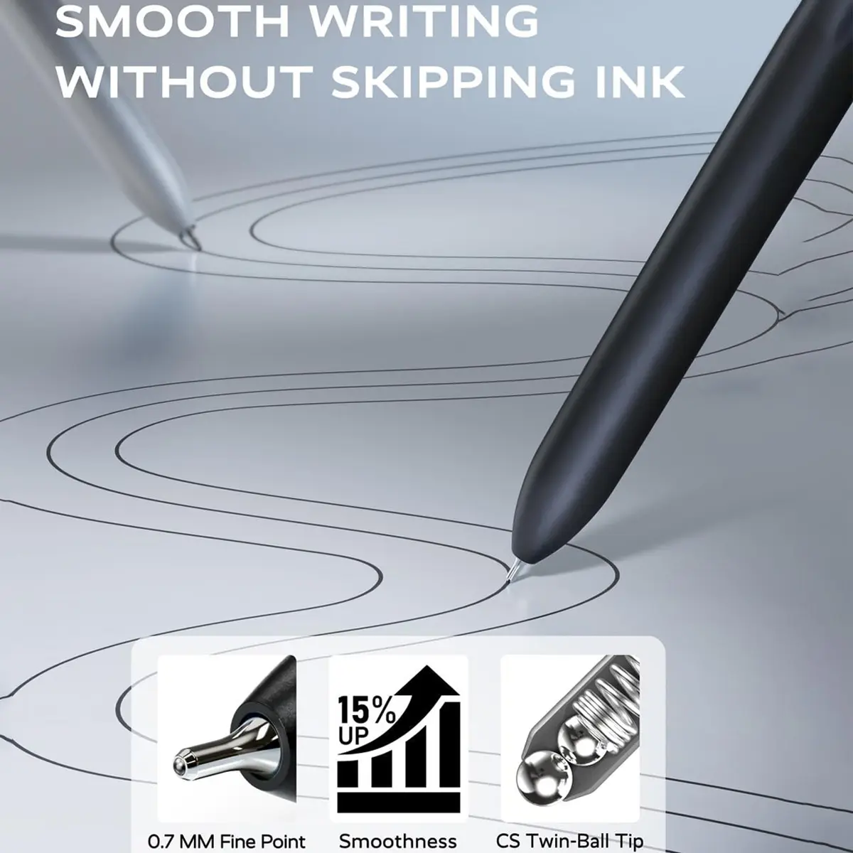·Rolling Ball Design: These 0.7mm fine point pens feature little steel ball clip that firmly attaches to books, notebooks, bags, or pockets, making them easy to carry and preventing loss. The design also effectively reduces scratches on paper