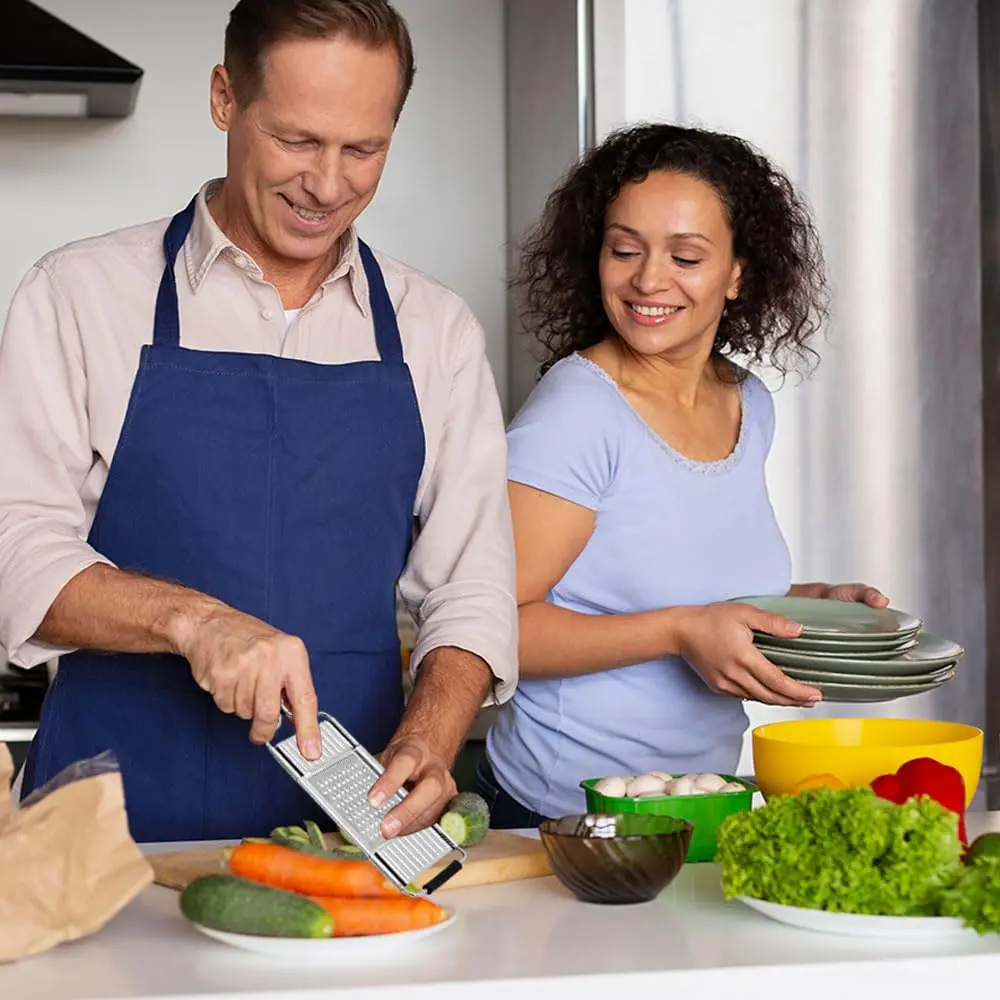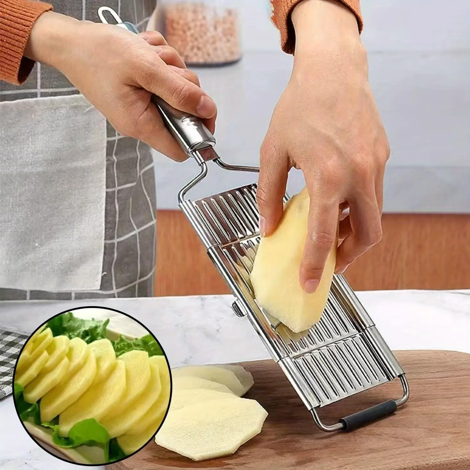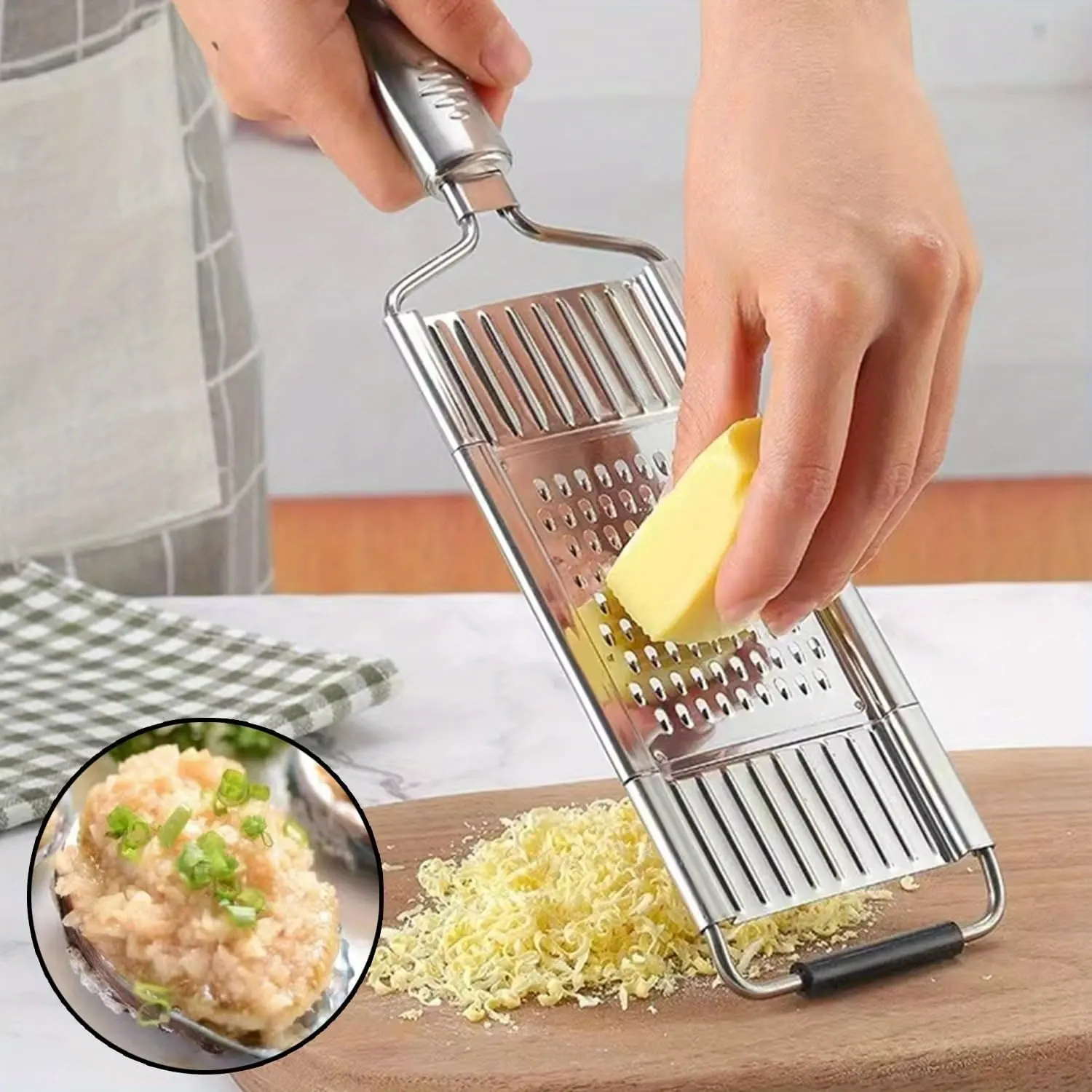 Quality Multipurpose Vegetable Slicer: Grater is made of food-grade stainless steel, safe for direct contact with food, providing a long life in your kitchen without having to worry about chopping affecting the taste of food or fruit