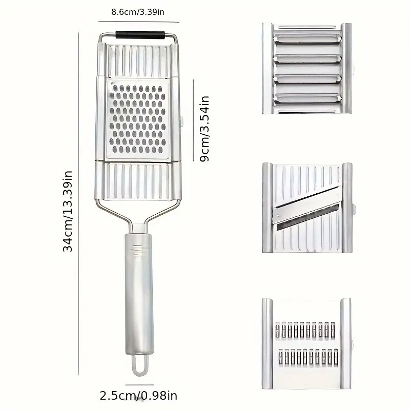 Multi Purpose Vegetable Slicer: This set included : 1 multipurpose vegetable slicer, 4 interchangeable blades , perfect for slicing and grating of vegetables, fruits, cheese, and more