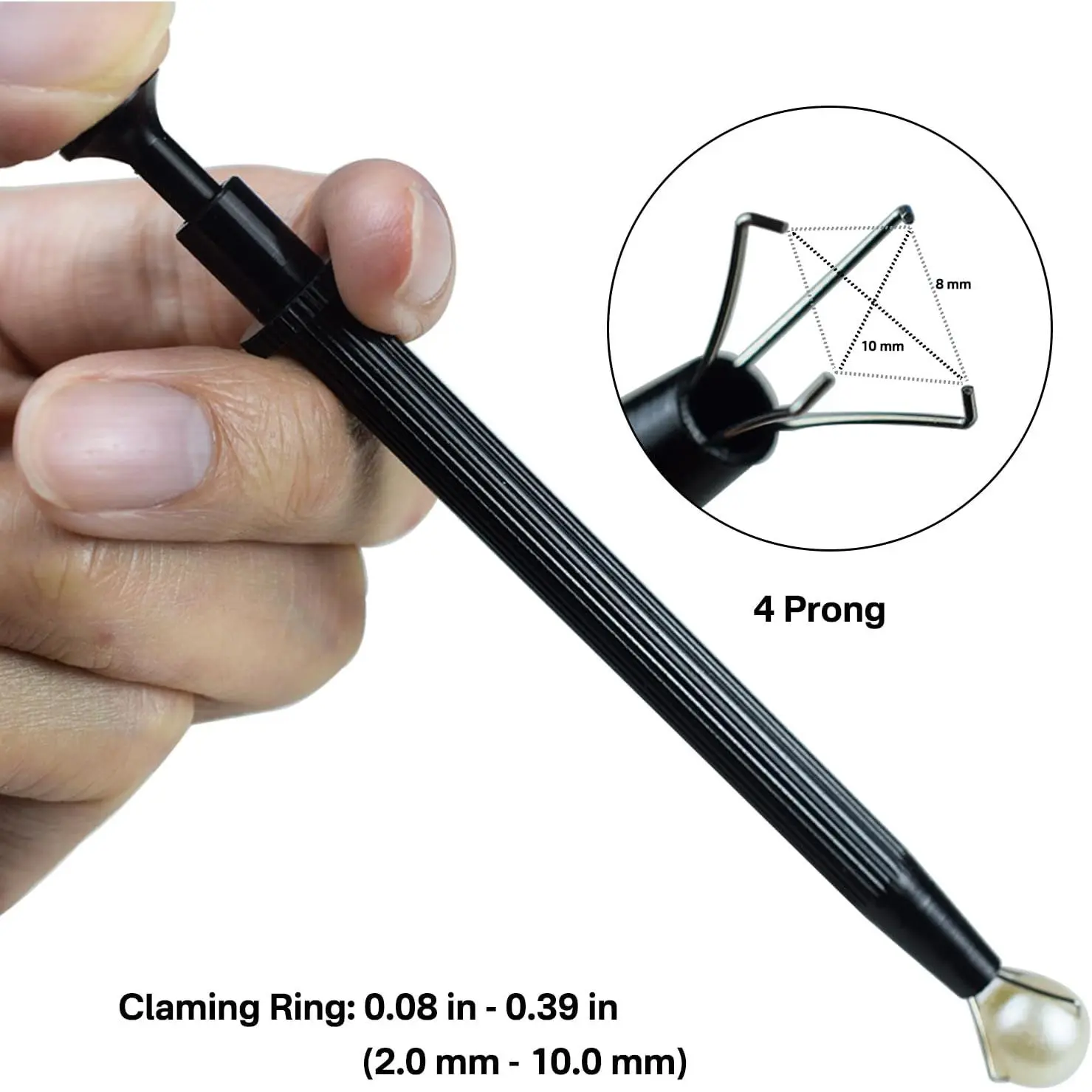 Special Grabber Tools: Regular tweezers don't work well on round or multi-faceted objects because of the difficulty of clamping and the difficulty of keeping your hand in a gripping position for long periods of time.But these special tweezers are great for grabbing/picking small things up that are hard to get toLong-lasting Metal Material: The housing of this pick-up tool is made of outstanding stainless steel material, which is sturdy and long-lasting for long time use.The stripe design ensures that this little gripper won't fall out of your hand easilyCompact Pen-sized Design: The 4 Prong are very thin and suitable for handling overheated parts or smaller projects.The internal spring is strong and the four small claws work accurately with each other to pick up small objects that need to be placed preciselyWide Application: Suitable for grabbing jewelry, piercing balls, piercing ring, plastic/glass beads, IC Chip, mechanical keyboard switches, precision parts, screws bolts, hex nuts, pickles, cotton balls and other little itemsPackage Contents: You will receive 2 pieces 4 claws grabber tools, which can meet your different needs and and serve you for a long time application. (1 piece silver / 1 piece black) Whether you use it for yourself or give it to a good friend, it's a good choice