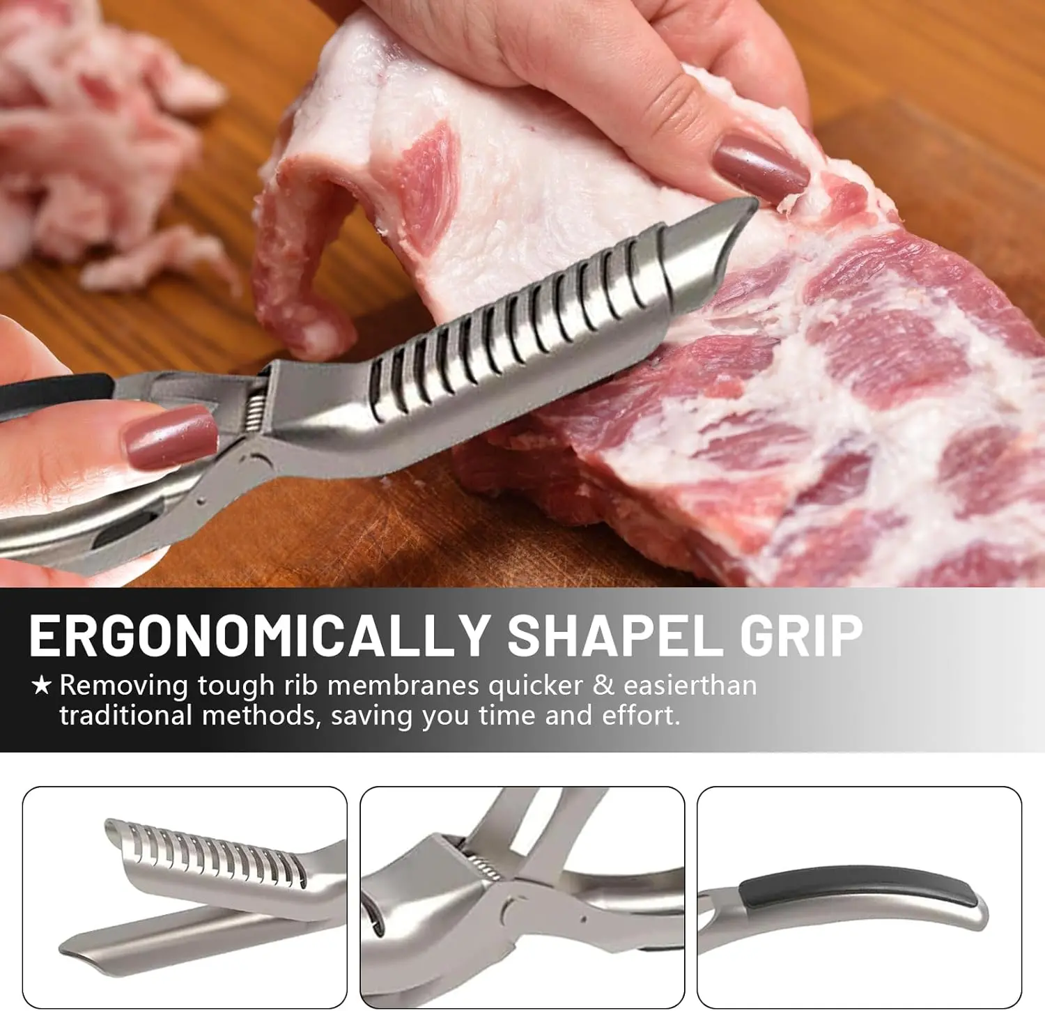 ·Stainless Steel BBQ Rib Skinner: This tool is made of stainless steel, ensuring durability and longevity. 🌟
