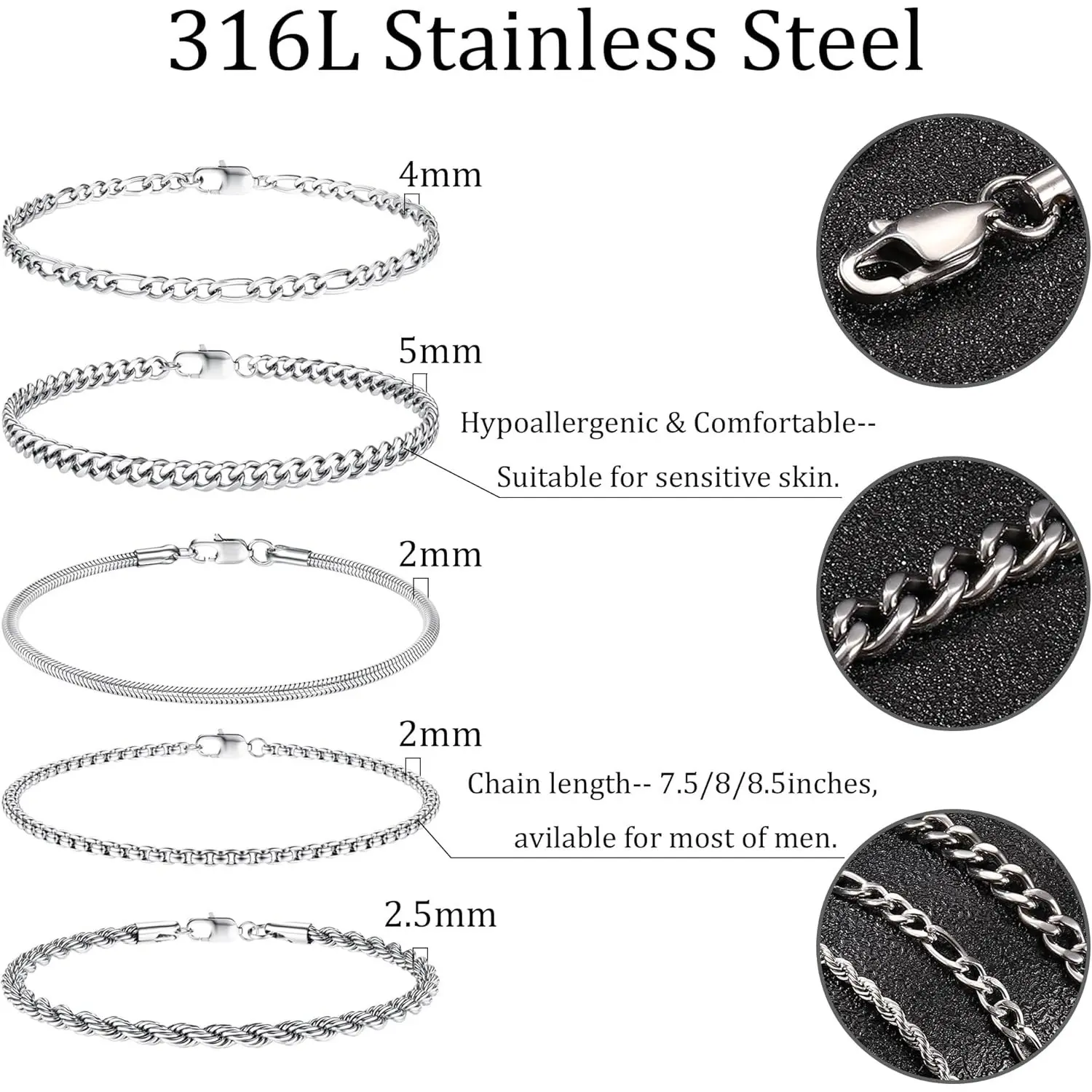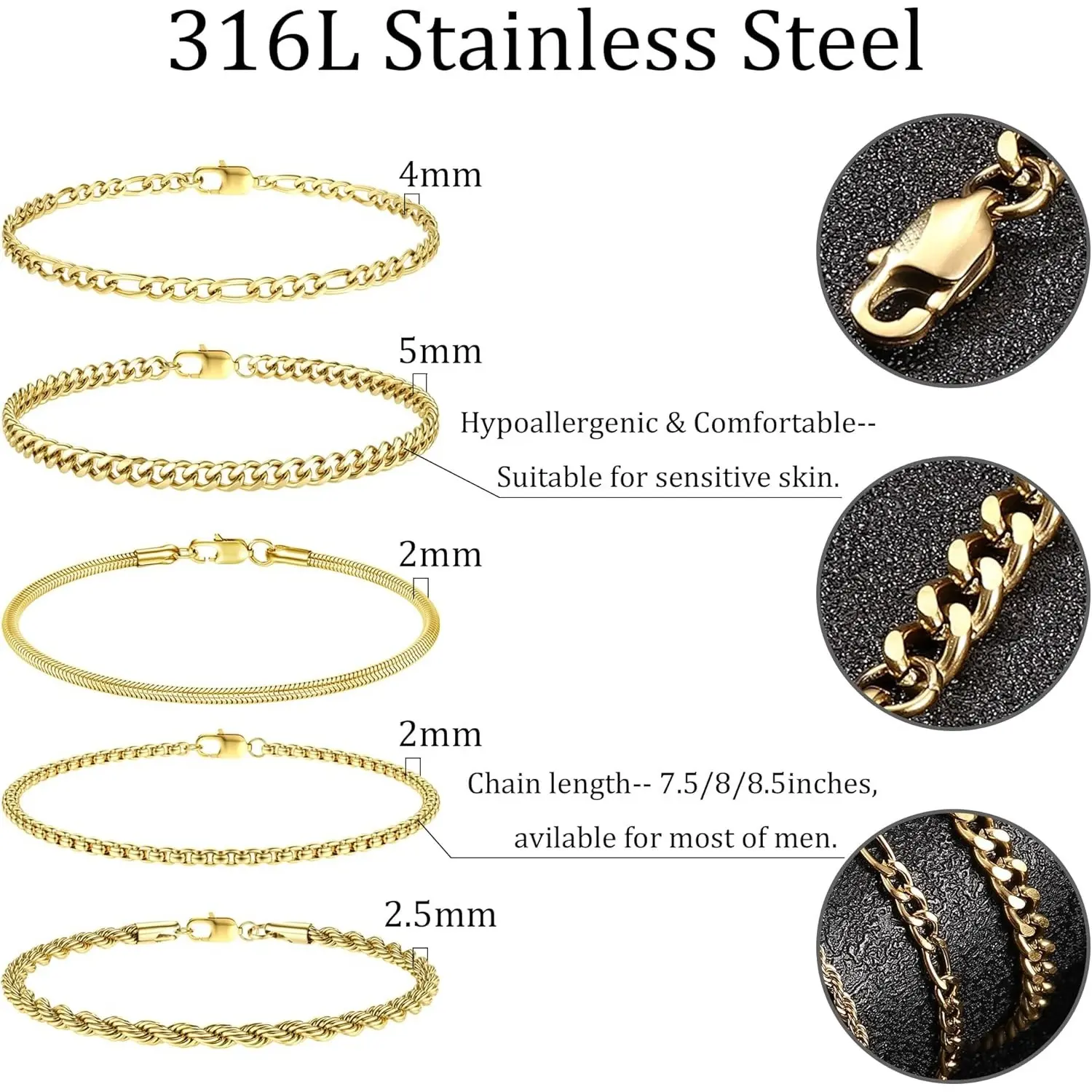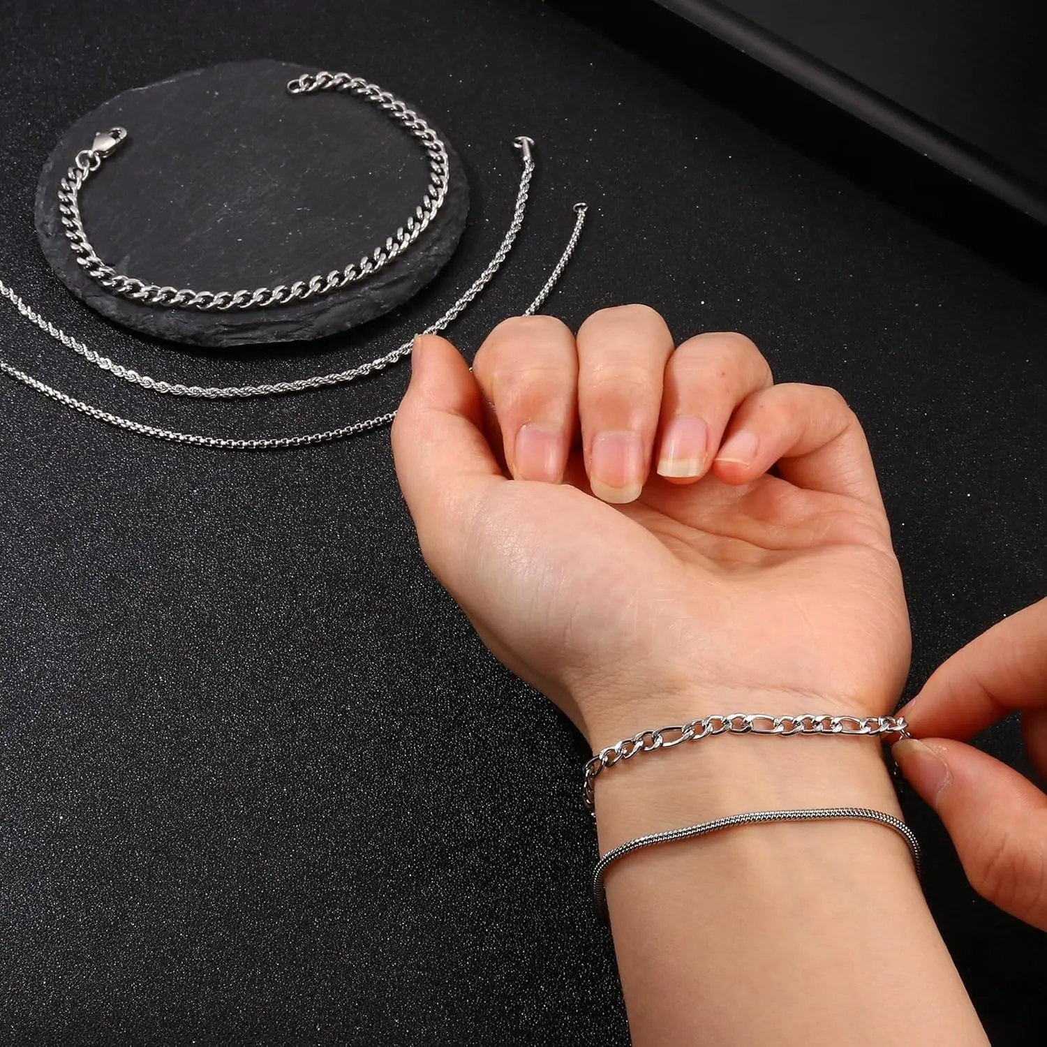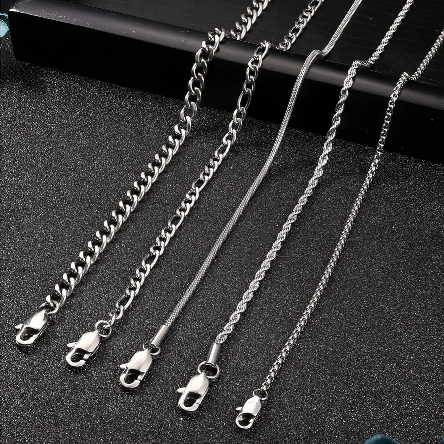 ·5 Styles: Includes rope chain, paperclip chain, figaro chain, and cuban link chain.
