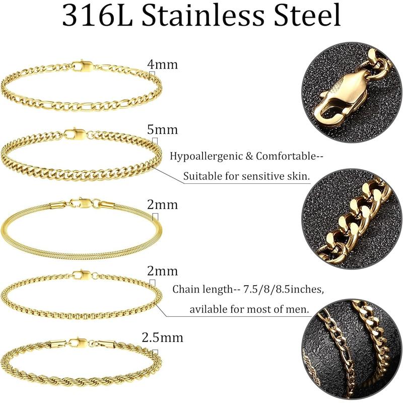 Conclusion:The FUNRUN 5Pcs Stainless Steel Permanent Bracelets for Men Women are a versatile and economical choice, made of hypoallergenic stainless steel, with a variety of chain styles and lengths. They are perfect for daily wear and make a great gift.