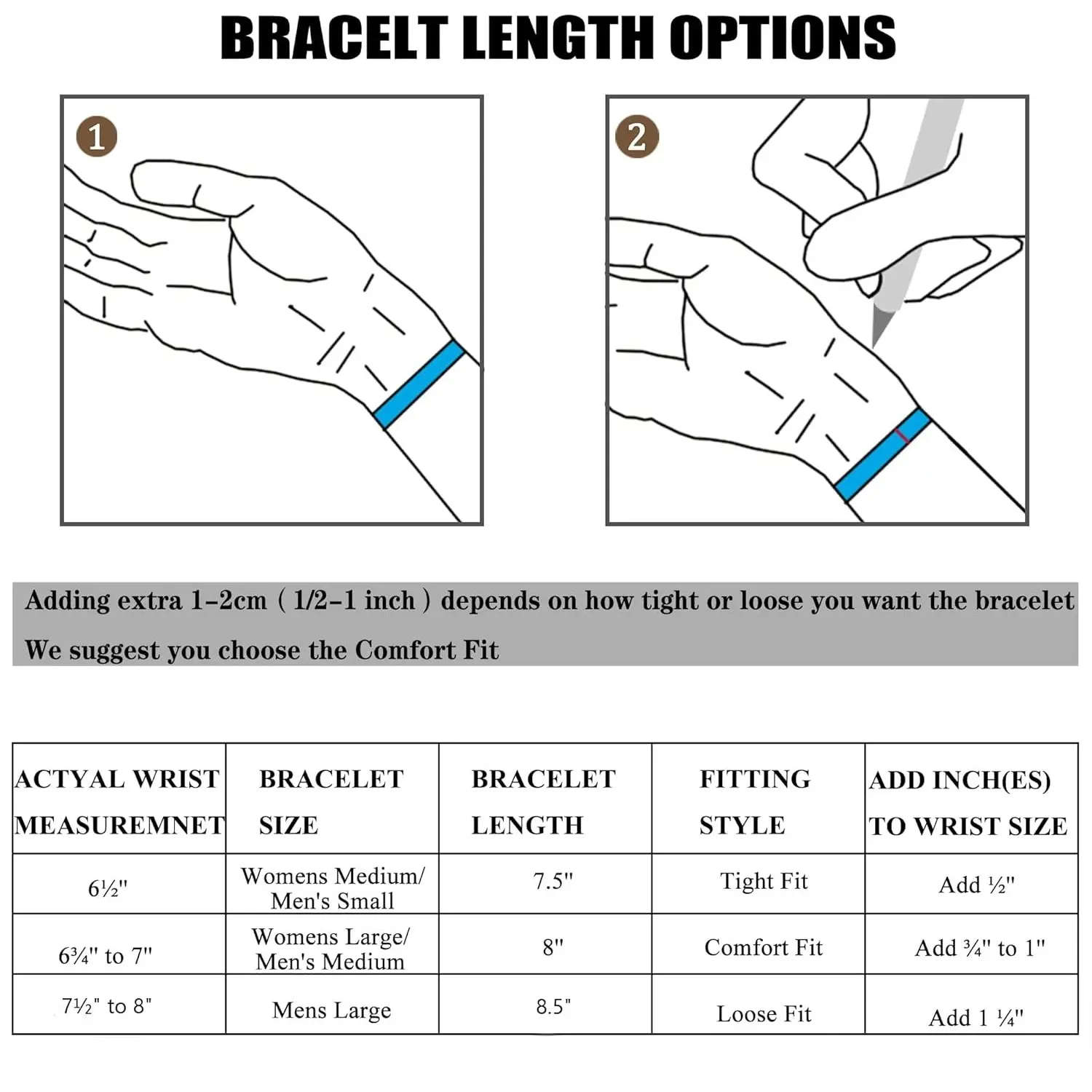 ·Fit: Perfect size to fit most men's wrists.