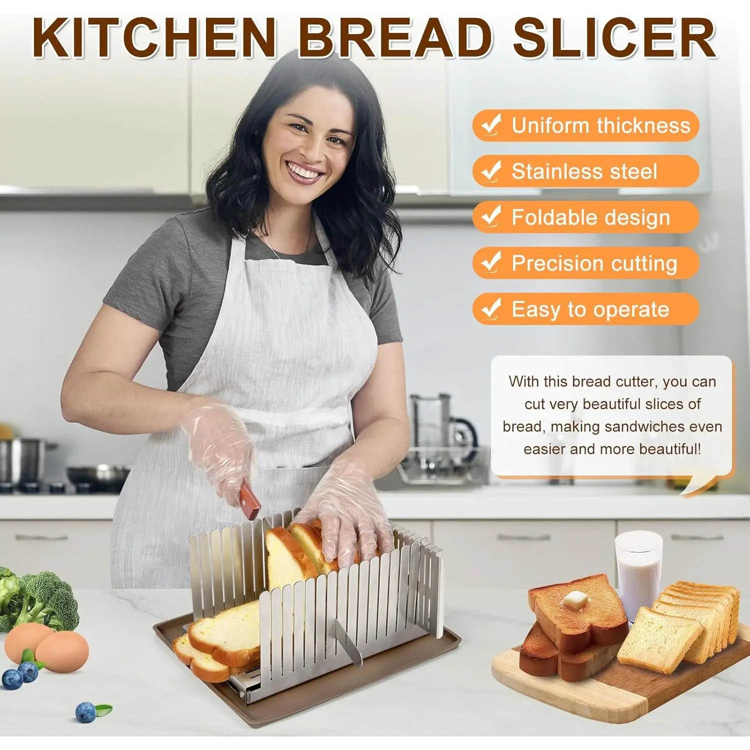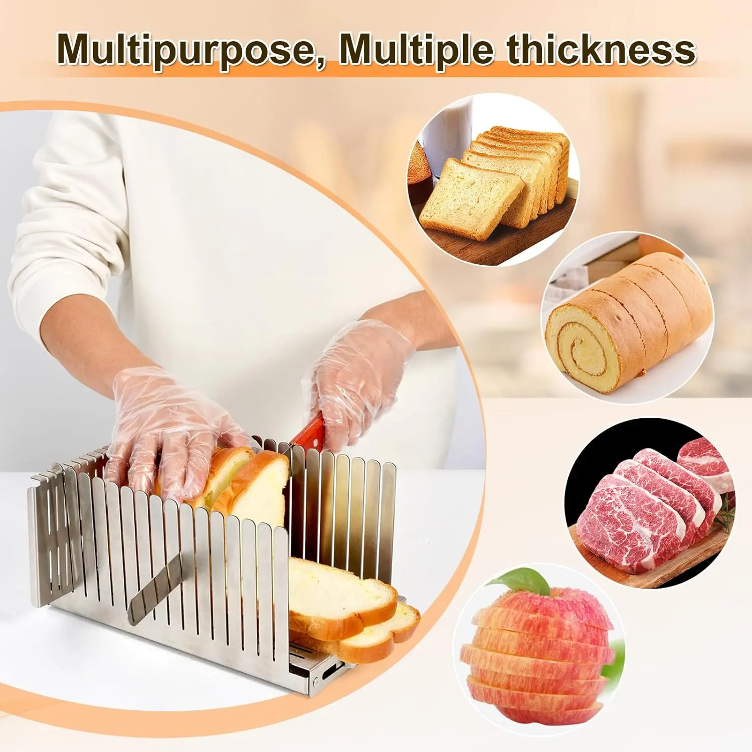 ● Easily cut evenly thick slices: For homemade bread, bagels, cakes.