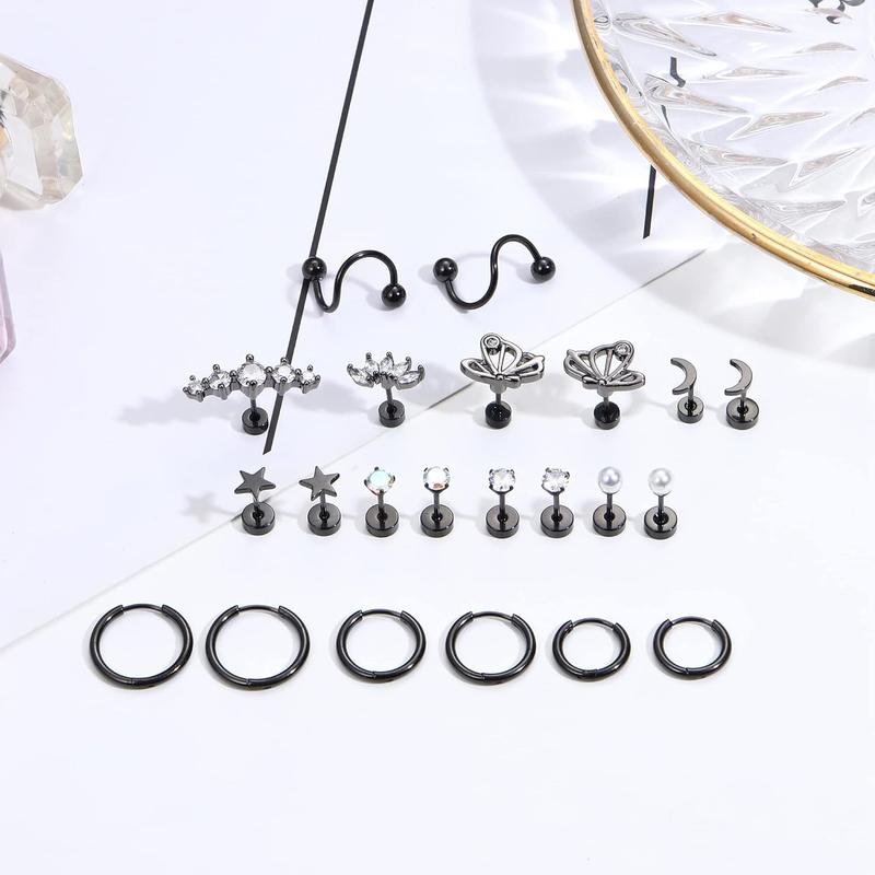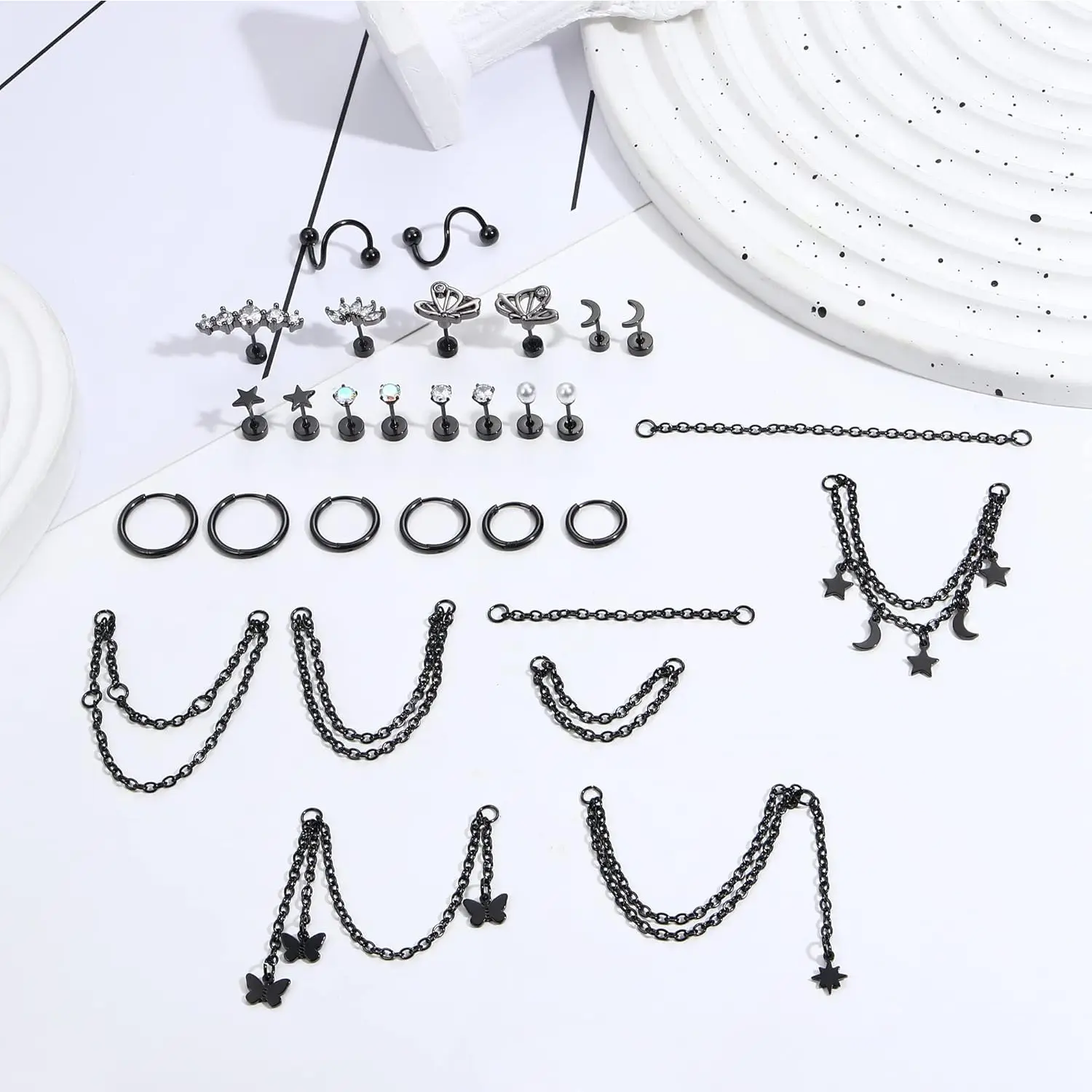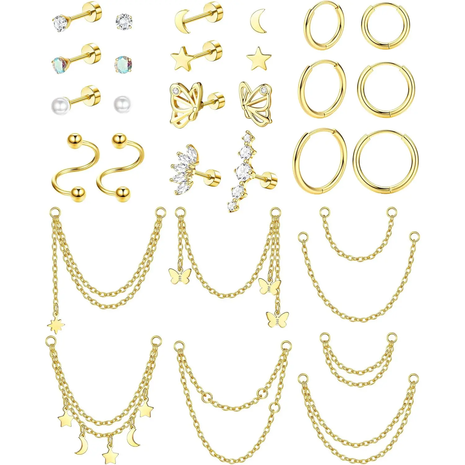 Various Styles: Comes with 16Pcs Cartilage Stud Earrings and 6Pcs Small Huggie Hoop Earring and 8Pcs Chain Dangle Piercing. Chain Dangle Design and Various Kinds of Cartilage Piercing Jewelry Provide Different Collocation, Satisfy Your Changeful Demands, Just Enjoy the Fun of DIY.