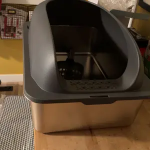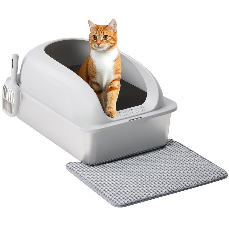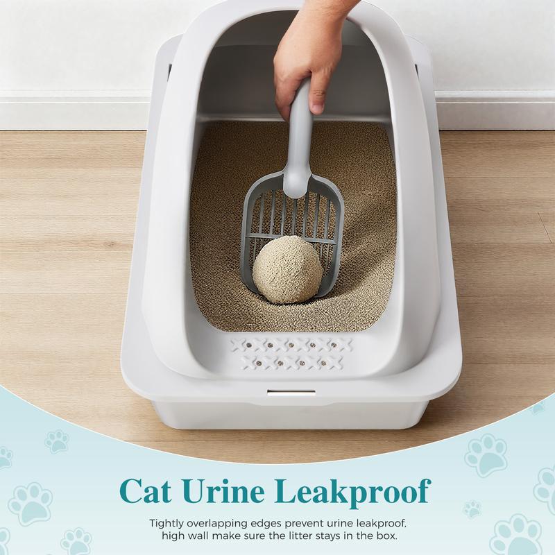¡Easy to Clean: The steel cat litter box is large enough, so you don't have to worry about changing the litter while you are working. The high sided cat litter box is made of rust-free material, not easy to stick to urine and feces, and comes with a scoop for quick sifting, making it easy to clean the litter box thoroughly.