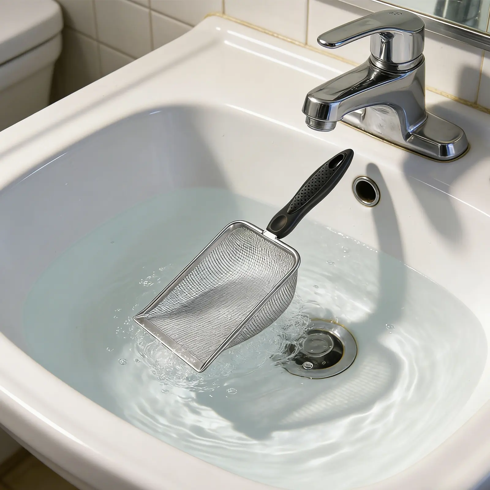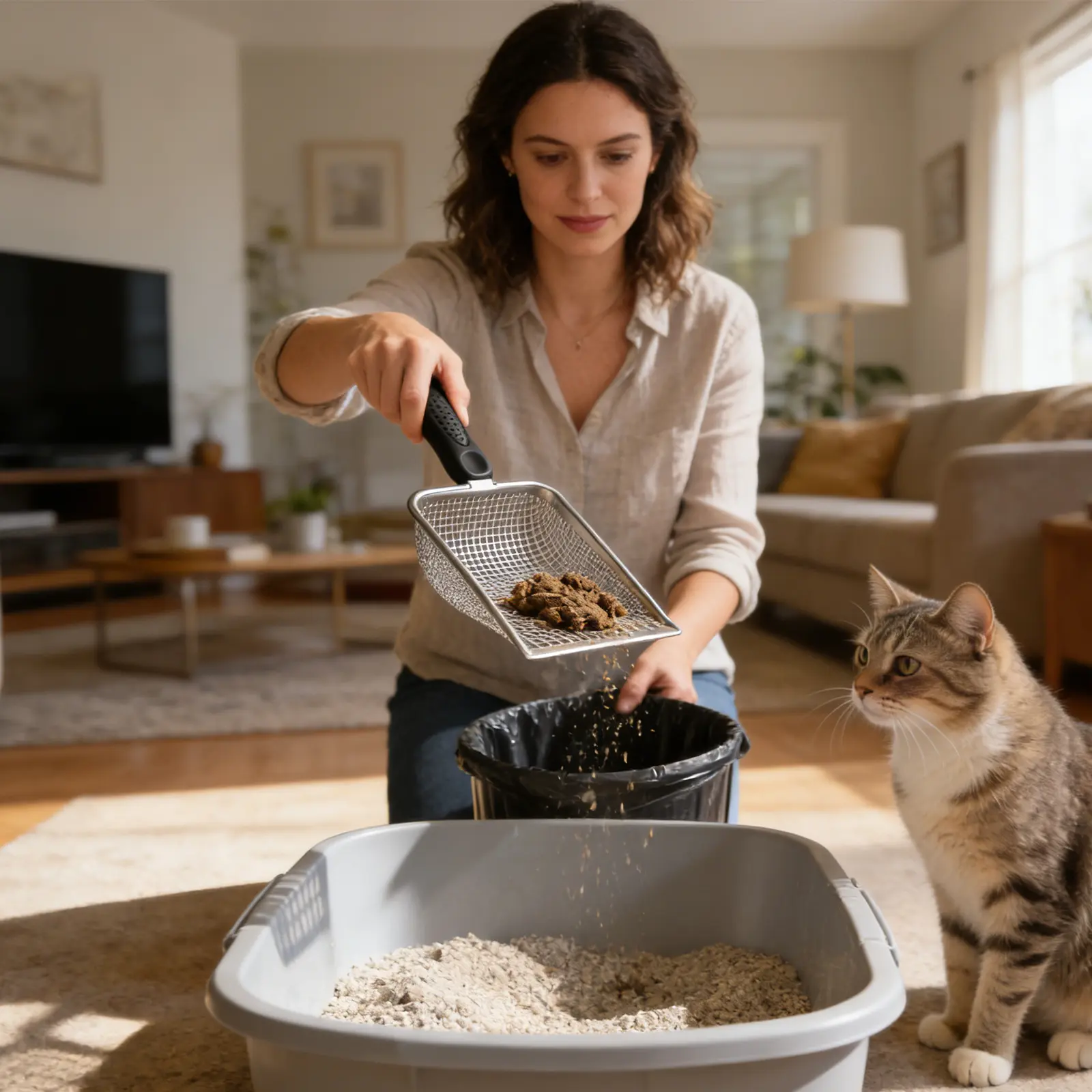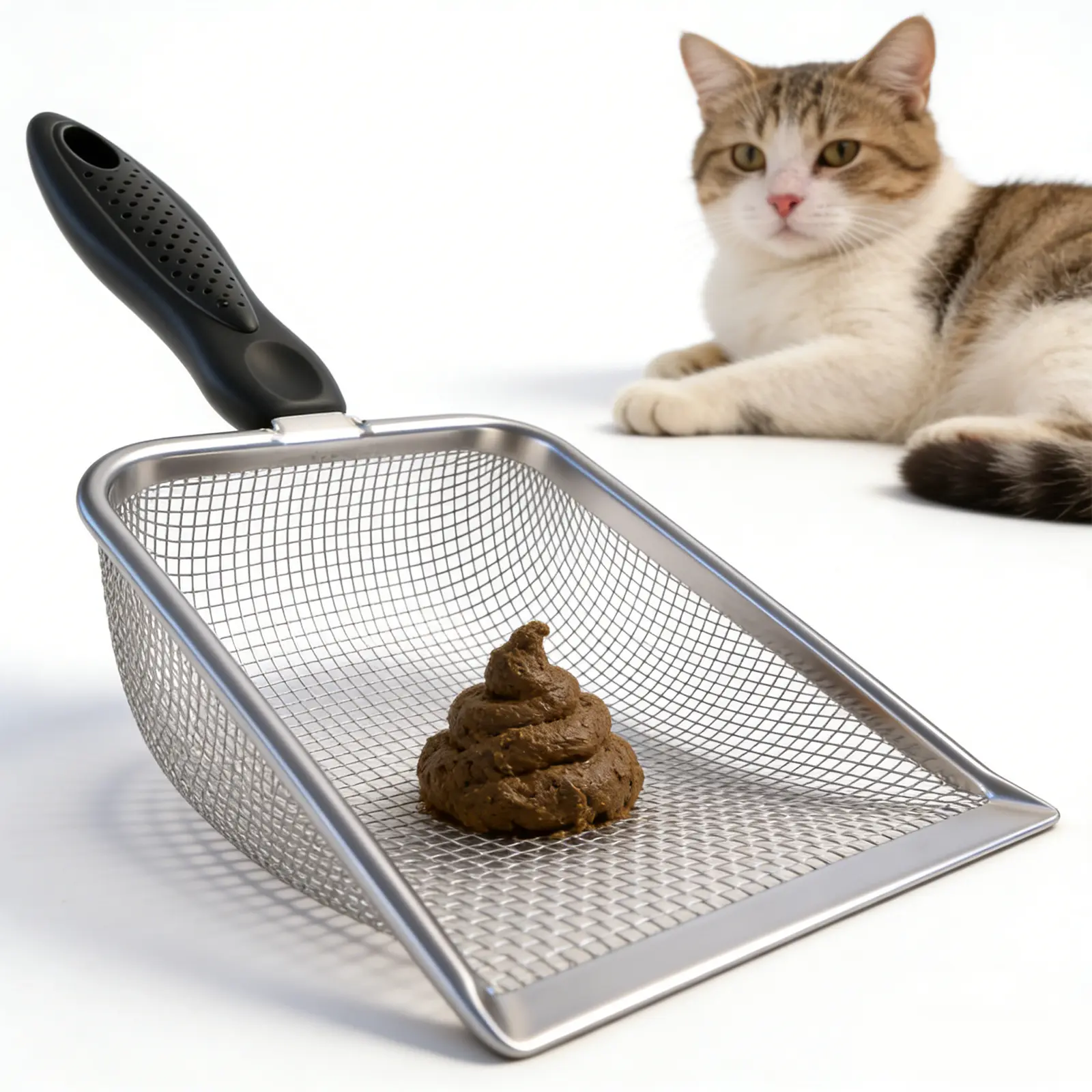 Stainless Steel Litter Scoop with Fine Mesh | Effortless Sifting, Less Mess | Comfort Grip for Long Use | #CatCareEssentials #PetHygiene