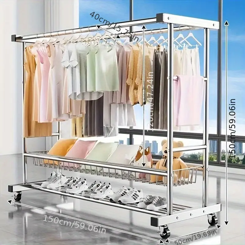 ·Wheels for Mobility: Equipped with wheels, this clothes rack is easy to move around your home. 🚀