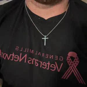 Fits nice, doesn’t hurt or cause any strain on my neck. It doesn’t turn my skin green or scratch off onto a bronze undercoat, and the pendant is secure and feels great.