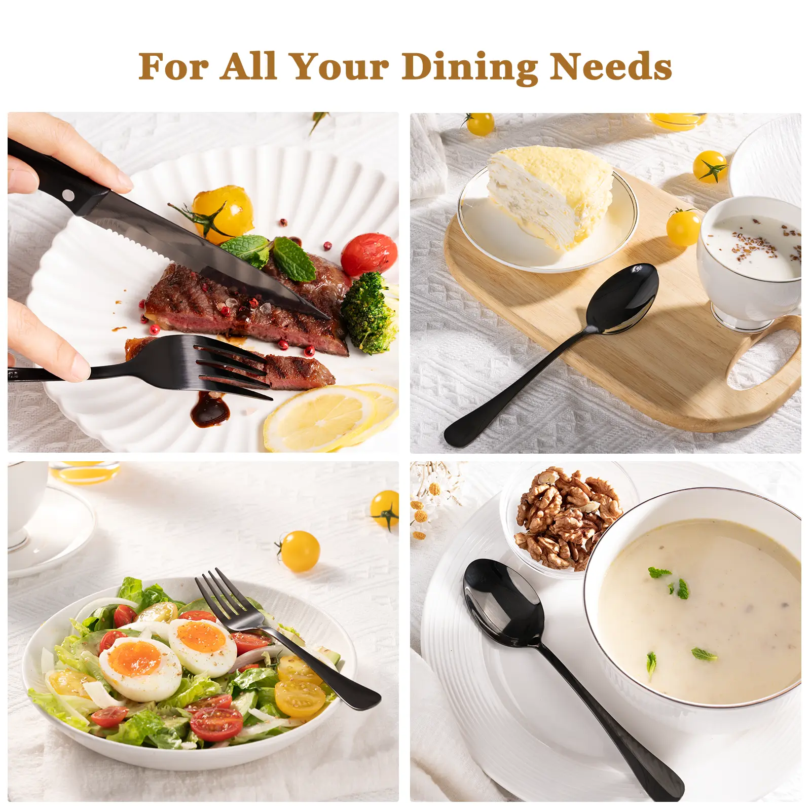·【GREAT VALUE FOR MONEY】: Each set includes 24 pieces, with 4 steak knives, making it perfect for a family of four or entertaining guests. Combining versatility with excellent value, this set is ideal for both everyday use and special occasions.