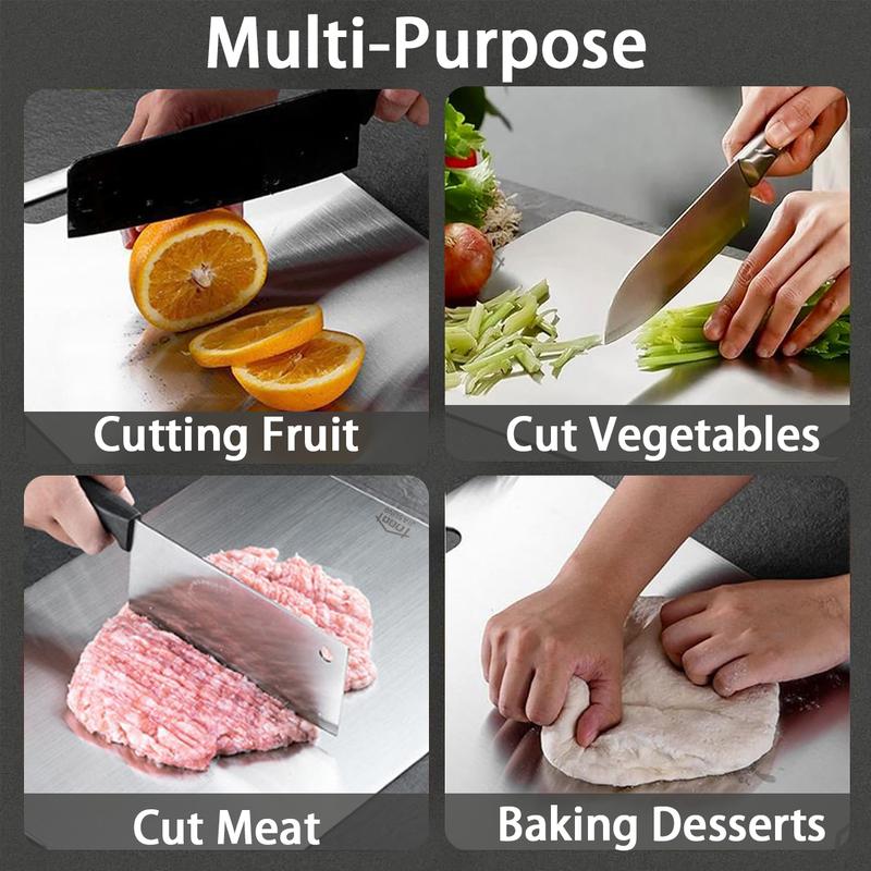 This 304 Stainless Steel Cutting Board set is a practical addition to any kitchen. It is suitable for various uses and ensures ease of cleaning.