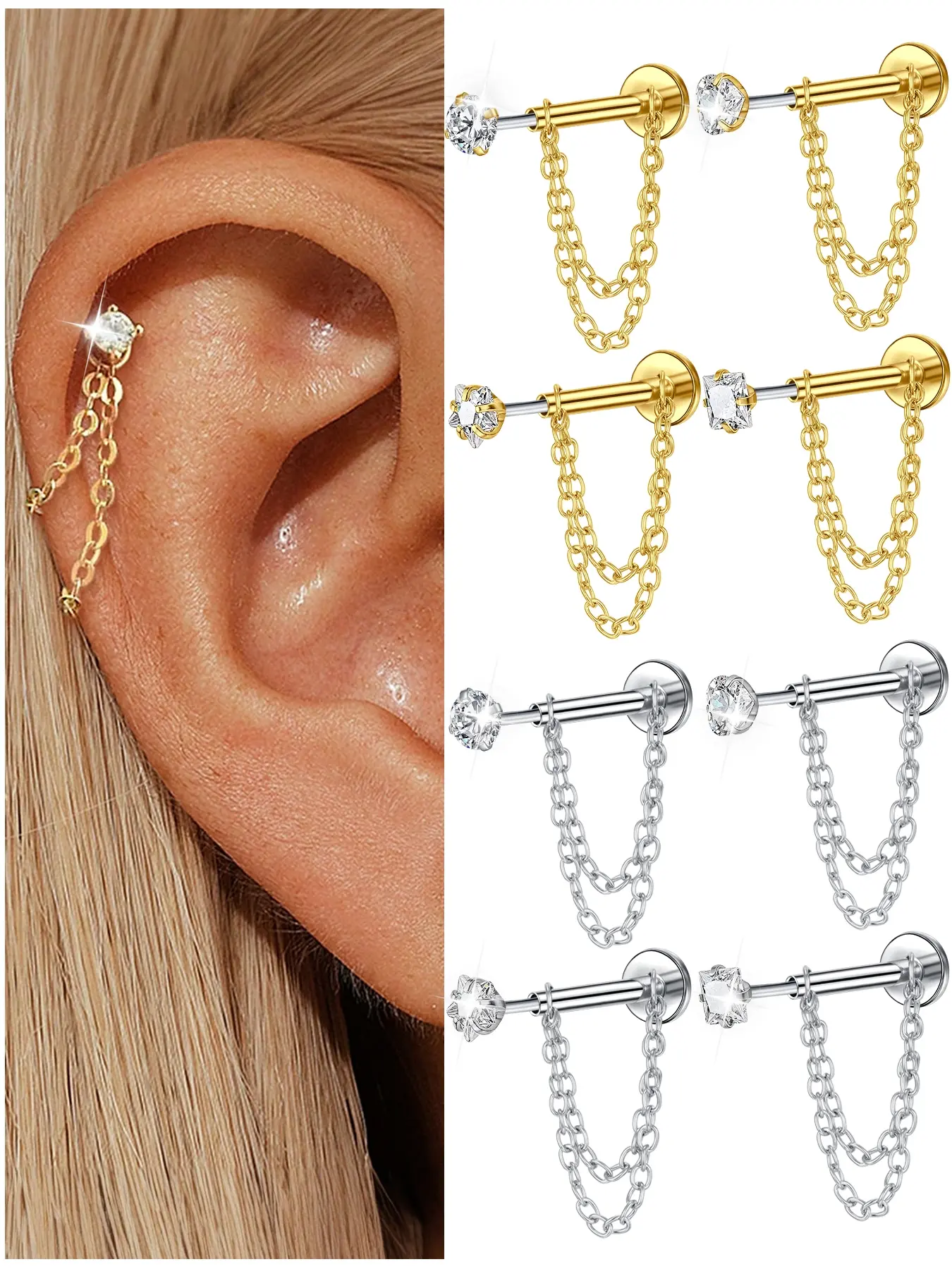 great for professions that dont allow piercings!! Barely visible depending on where the piercing is located. it catches the light glare in certain cartilage piercings but overall amazing. I like that the top clasps have different sizes aswell!! I’ve bought these 2x! Below is a pic for reference