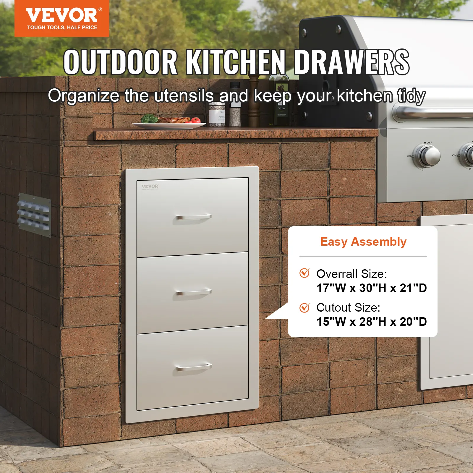 • Premium Details: The stainless steel BBQ drawers were built with a lot of consideration, providing maximum convenience and security. Round corners can reduce scratches while in use; a sleek handle allows you to open the drawer effortlessly. The seamless design can keep your inside items dry and secure.
