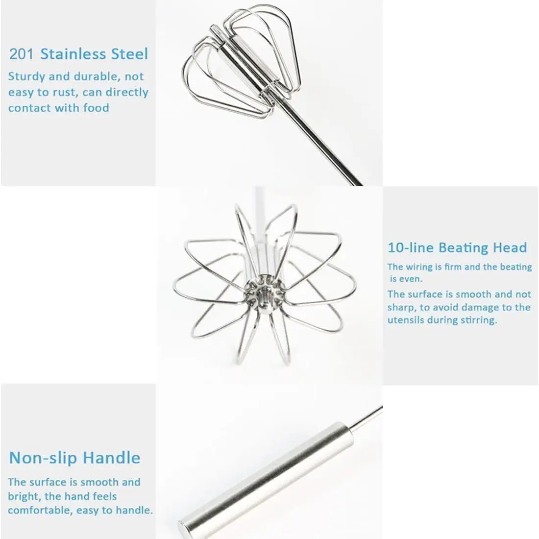Premium 201 stainless steel eggbeater - rust-proof, durable, built to last!