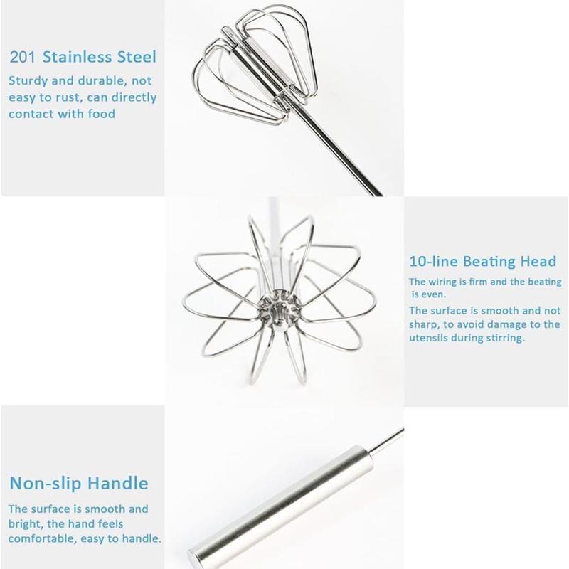 Effortless Whisking Experience: Say goodbye to manual mixing struggles! The semi-automatic whisk features a unique spring-loaded mechanism inspired by mechanical principles. Simply rotate the whisk head, push down, and release for quick, even mixing. No electricity or batteries required—just pure, efficient whisking power. Perfect for whisking eggs, blending batters, or frothing milk for your morning latte.